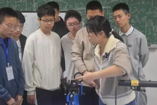 活动中,学员们进入芙蓉隧道、格物致理空间,了解神奇的物理现象背后的科学原理。在实验室,学员们在基础物理实验教学团队的指导下,亲自动手,完成了迈克尔逊干涉仪、电热当量测定以及应用霍尔效应测量磁场等大学物理实验课题。