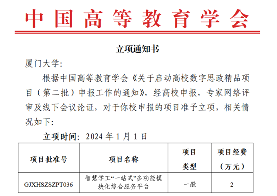 近日,中国高等教育学会公布了“高校数字思政精品项目(第二批)”立项名单,我校报送的《智慧学工“一站式”多功能模块化综合服务平台》获批思政教育智慧平台类立项。
