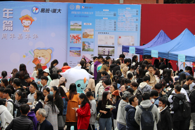 12月19日,由厦门大学学生工作部(处)主办,厦门大学易班·i厦大发展中心承办的易班·i厦大发展中心八周年嘉年华“逐梦互联迎百年,易起奋进谱新篇”主题活动在三家村学生活动广场举行。来自全校各单位的16个网络文化工作室和学院易班工作站在现场摆设活动摊点,开展以百年校庆为主题的互动活动,展示工作站和工作室的建设成果。本次活动把握迎接百年校庆这一重要时间节点,统筹线上线下活动,集趣味性和价值性于一体,赢得广大师生的积极参与。
