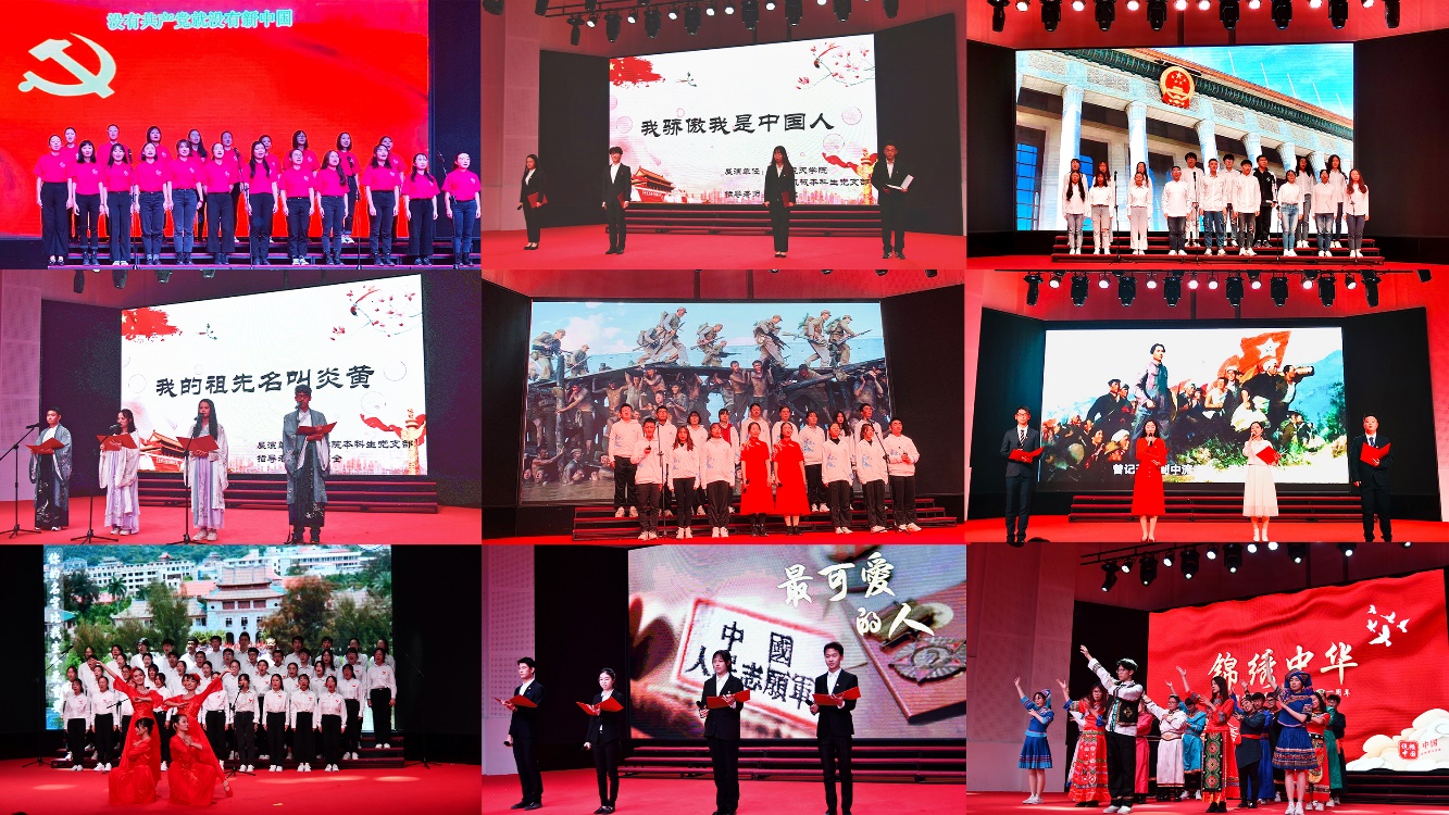 展演第二篇章“强国志”中,能源学院本科生党支部的一曲《唱给人民的信》,唱出了伟大抗疫斗争中人民公仆的无私奉献。环境与生态学院本科生党支部的诗词朗诵《水调歌头·重上井冈山》,药学院本科生党支部的现代诗朗诵《我的祖先名叫炎黄》,少数民族预科班的表演舞蹈《锦绣中华》,海洋与地球学院本科生党支部的散文朗诵《最可爱的人》,电子科学与技术学院电子工程系2020级硕士生党支部的黄梅戏表演《江姐选段》等节目依次登台,精彩纷呈的表演带领观众重温了中华民族悠悠五千年历史文明,展示了炎黄子孙代代赓续的凌云壮志。