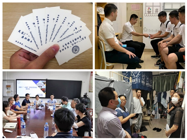 在常态化走访学生社区的基础上,各楼栋工作组通过组建楼栋交流群、召开专题座谈会、发放专属联络卡/张贴联络信息海报“亮身份”等方式,主动拓宽沟通渠道。新区2兼辅团队主动向学院专职辅导员了解社区学生个人履历、性格特点、兴趣爱好、学习情况、身体状况、人际关系等,做到“六必知”,在为学生精准“画像”的基础上形成“一宿舍一表格”工作台账,为开展个性化、定制化的思政教育打下了扎实基础。海韵14兼辅团队组建“海韵14微信工作群”、创建学生党建宣导平台“厦大扬才先锋微信公众号”、设计制作400张兼职辅导员联系书签,为“面对面”和“键对键”工作开展铺好路子。芙蓉2兼辅团队将团队成员信息和“思想引领、疫情防控、常见问题、信息查询”四大方面24条常用服务信息以二维码形式呈现、上墙,方便学生查询,并举办“芙蓉沙龙”系列活动,定期与社区学生开展座谈交流,了解学生实际需求,同时也为社区学生开展政治理论学习、学术研讨等搭建平台。漳州校区兼辅团队搭建“楼长有约”沟通交流平台,与学院辅导员、学生社区楼长层长就楼栋管理、宿舍文化氛围营造、学生社区管理服务团队建设等事宜进行研究讨论,规划打造社区治理共同体。
