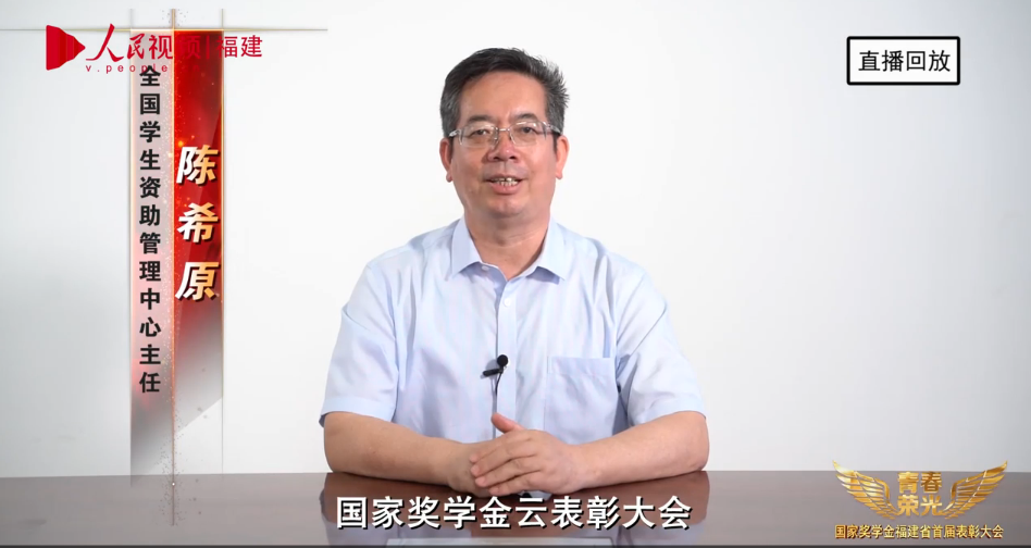 6月29日晚8时,国家奖学金福建省首届表彰大会在线上举行。颁奖典礼通过福建频道、福建教育电视台等媒体全程直播。全国学生资助管理中心主任陈希原、福建省教育厅党组书记林和平、福建省人力资源和社会保障厅党组成员及副厅长洪长春,部分师生代表出席颁奖典礼。我院2016级优秀博士毕业生魏斌斌同学作为厦门大学国家奖学金获得者唯一学生代表参与线上颁奖典礼,并在典礼结束后线下参加学院交流活动。