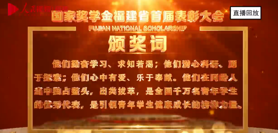此次在特殊时期、采用特殊形式召开的颁奖典礼充满着鼓舞、斗志和青春荣光,为广大优秀学子送上了至高的祝福,也是学院全体国家奖学金获得者的荣耀时刻。我们热切期盼每位优秀的厦门大学化学化工学院学子都能秉承“自强不息,止于至善”的校训精神,弘扬“和而不同,卓尔不群”的文化传统,向先锋榜样学习,砥砺奋进,再创佳绩!