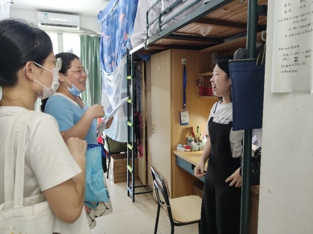 赵智超、占群丽两位兼职辅导员带队走访了海韵15宿舍楼。受疫情影响,走访的两间宿舍都只有一名同学因课题研究需要而返校。在充分了解两位同学的基本情况后,占群丽老师根据自身的工作经验耐心给同学提供职业规划建议;赵智超老师向同学们介绍了学校 “一站式”学生社区综合管理模式的相关措施,并表示乐意帮助同学们在学习和生活上遇到困难时做“减法”。同学们也表示要珍惜同老师沟通交流的机会,让师生之间的联系更加紧密。