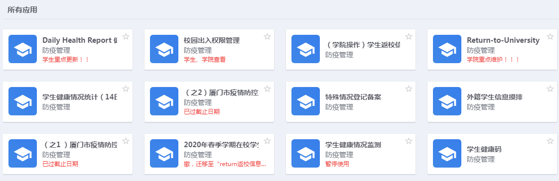 疫情发生以来,为加强国内外各类学生管理,学生工作平台10余项防疫管理应用经过40余次更新迭代,开发“一张表”、构建“一张网”、依托“一个库”、绘制“一个码”,全面、准确、及时掌握全校学生基础资料、每日行踪、健康状况、返校情况、到校确认等60余个字段的信息,完善“网格化”、“单元化”、“人盯人”跟踪管理体系。首批返校学生通过学工平台“学生返校登记”模块,提前一周提出返校申请,经学院审批通过后,登记准确的返校相关信息,学校通过分析数据精准施策,统筹做好接站、校门出入管理、住宿安排等各项工作安排。一日上线健康打卡系统,三日完成健康码研发启用,经常半夜凌晨更新升级,每日定时发布打卡业务期,实时更新统计返校学生数据……,平台开发负责人、学生处管理科符晓珠同志和全校负责学生数据管理的学工干部们已在信息化战“疫”的战场上连续奋战了四个月,返校确认数据按预期平稳递增是对他们工作最好的表彰。
