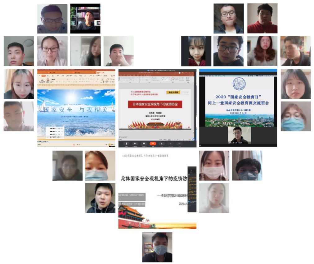 4月14日-15日,院团委组织学生们通过线上主题班会、团课、党课的形式,让同学们学习了解国家安全内容、全民国家安全教育日的意义。“作为生科学子,看到生物安全被纳入国家安全体系,我更加认识到了人民在党和国家心目中沉甸甸的分量,也意识到作为青年学子所肩负的担当与使命。”2018级本科生五班班长王烁铭说。