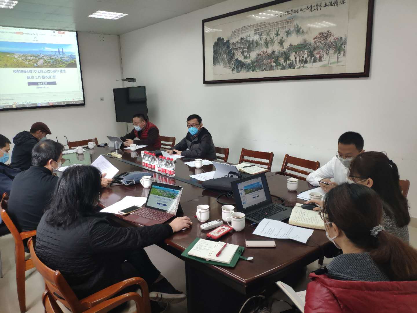 3月12日下午,学校如期举行疫情防控和学生就业工作推进视频会。为进一步贯彻落实会议精神,3月13日上午,化学化工学院召开党政联席会专题研究2020届毕业生的就业促进工作。李芬芬副书记详细汇报了学院学生就业进展情况,已采取的就业促进措施和院学工组提议的就业促进新思路。结合专业特点,会议研判、分析了学院2020届毕业生在疫情防控下的就业形势,讨论了进一步落实促进就业的工作举措,帮助毕业生更高质量和更充分就业。学院党政联席会成员,院团委书记、副书记,毕业班辅导员等参加了专题会议。