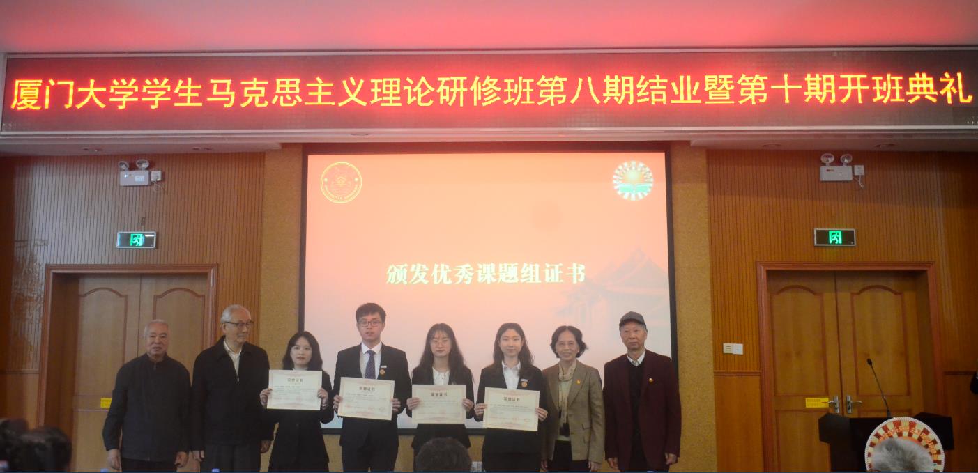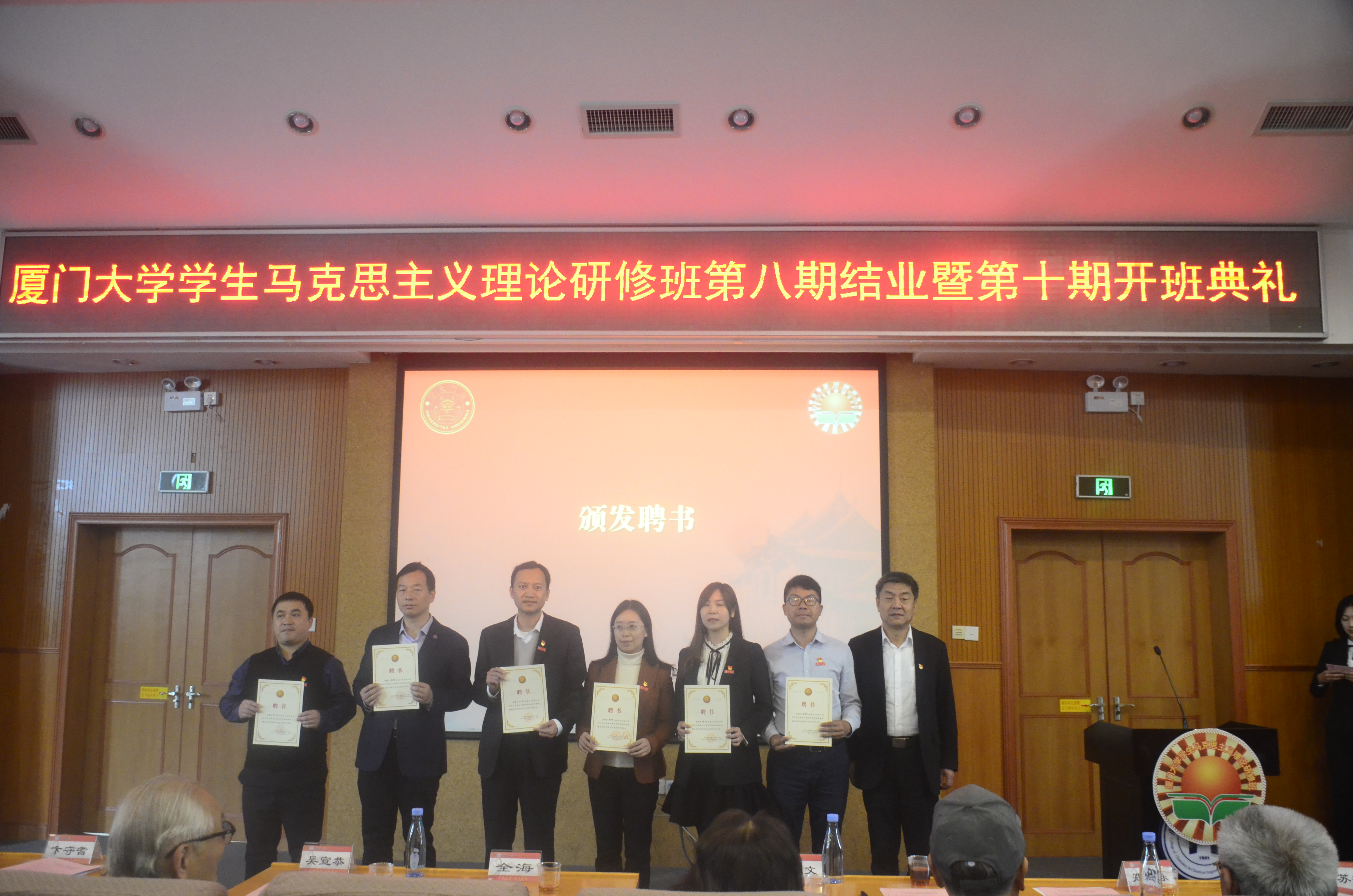 12月22日,我校“学生马克思主义理论研修班”第八期结业暨第十期开班典礼在化学报告厅顺利举办。校党委副书记、纪委书记全海,校党委原书记吴宣恭,校关工委主任陈力文,校关工委顾问卞守耆,校关工委常务副主任黄如彬,副主任颜章炮、郑保东、杨敬达、苏振富、黄福才、司卓亚,党委党校原常务副校长苏劲,校党委组织部、党委宣传部、党委学生工作部、党委离退休工作部、团委相关负责人,各学院、研究院、教学部党委副书记,第八期、第九期和第十期马研班指导老师以及全体学员参加典礼。典礼由第十期马研班学员陈怡岚主持。