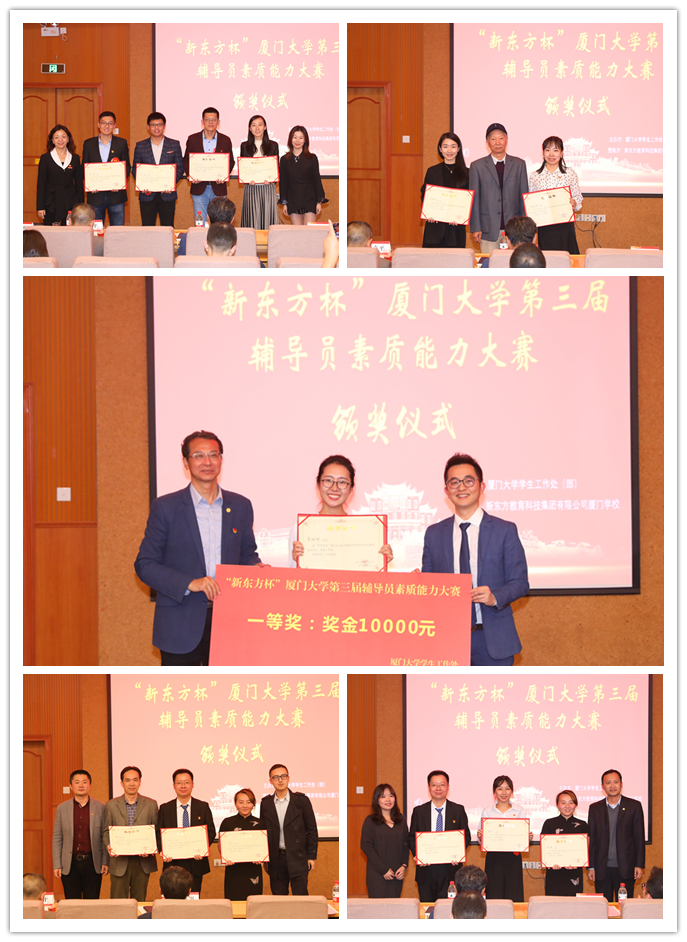 赛后,厦门大学学生工作部(处)与厦门市思明区新东方教育培训学校签订了校企人才战略合作协议书,双方将共同开展辅导员素质能力提升项目。据悉,厦门大学辅导员素质能力大赛已经成功举办了三届,比赛旨在进一步推动厦门大学辅导员队伍职业化、专业化发展,为辅导员间搭建高水平的学习交流平台,达到以赛代训、以赛促学的目的,不断提升辅导员的理论水平、专业素养和宣讲能力,全面提高辅导员开展大学生思想政治工作的素质能力。