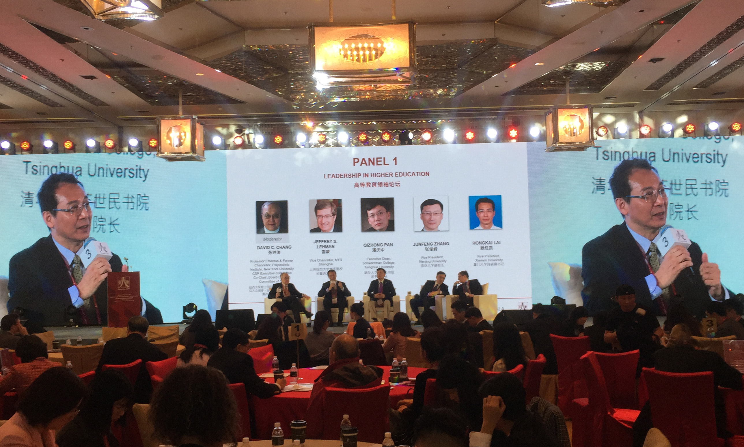 高等教育领袖论坛上,我校党委副书记赖虹凯与清华大学苏世民书院、南京大学、上海纽约大学的校领导一同就高校国际化办学经验做分享交流。赖虹凯表示,厦门大学的办学初衷和校训精神与百人会英才学者奖的设奖理念相契合,学校在建设“世界一流大学”的办学目标中坚持国际化办学道路,创建了第一所中国名校全资设立的、具有独立校园的海外分校——马来西亚分校。他对马来西亚分校情况做了重点介绍,从分校的创办渊源、使命与愿景以及当前分校的办学进展等方面进行详细分享。随后,几位高校领导针对现场嘉宾提出的关于未来青年领袖培养、创新能力培养、言论自由等方面问题表达了各自的见解。