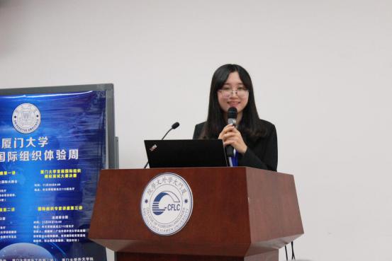 厦门大学教务处副处长黄艳萍老师首先致辞。她谈及厦门大学自诞生之日起就将“研究高深学问,养成专门人才,弘扬世界文化”作为办学宗旨。近百年来,厦门大学始终在开放办学的道路上奔跑前进。厦门大学首届国际组织体验周的举办和厦门大学“外国语言文学创新实验班”的创办符合我校“培养理想信念坚定、家国情怀浓厚、国际视野开阔、专业素养精深、外语能力突出的一精多会、一专多能的拔尖创新型人才”的人才培养理念。