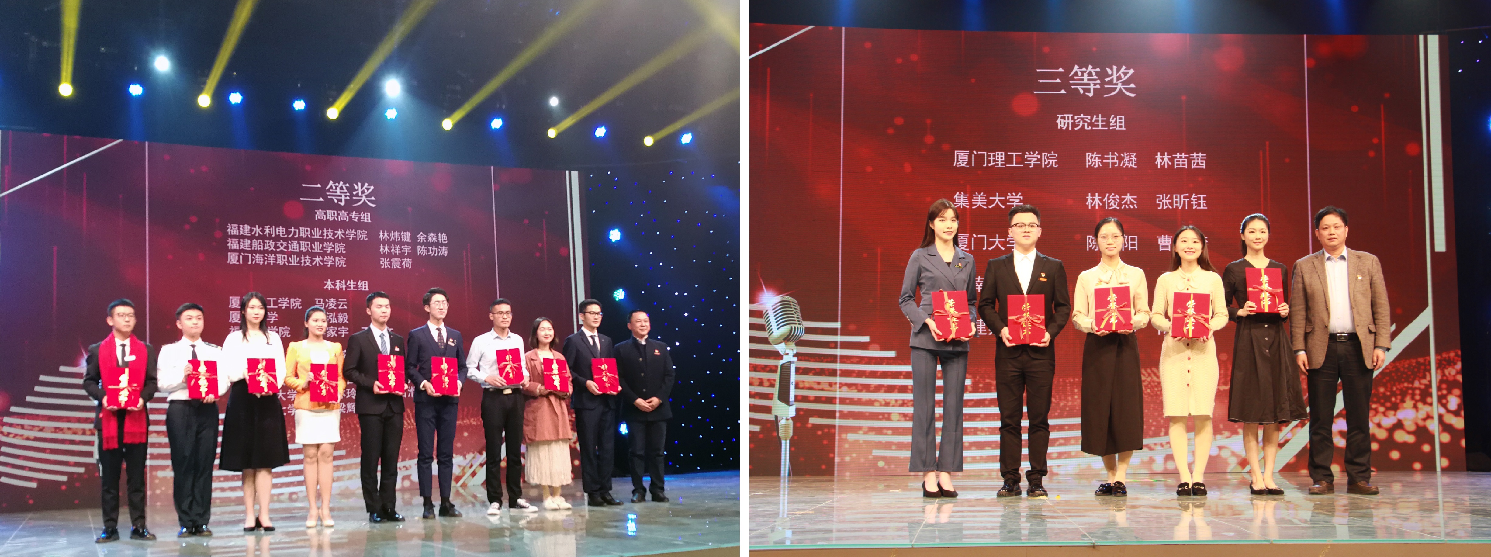 12月4日,由中共福建省委教育工委主办,福建教育电视台、福建省高校思想政治理论课教学指导委员会、福建省高校网络思想政治工作中心承办的“马克思主义能够给予我们什么”第三届福建省高校大学生主题征文和微演讲总决赛暨颁奖典礼在福建师范大学举行。我校学子斩获微演讲比赛二等奖2项和三等奖1项。其中,管理学院吴泓毅、医学院梁辉声分别获得本科生组和研究生组二等奖,经济学院陈雨阳获得研究生组三等奖。省委教育工委副书记王建南出席颁奖典礼,并为获奖选手代表颁奖。