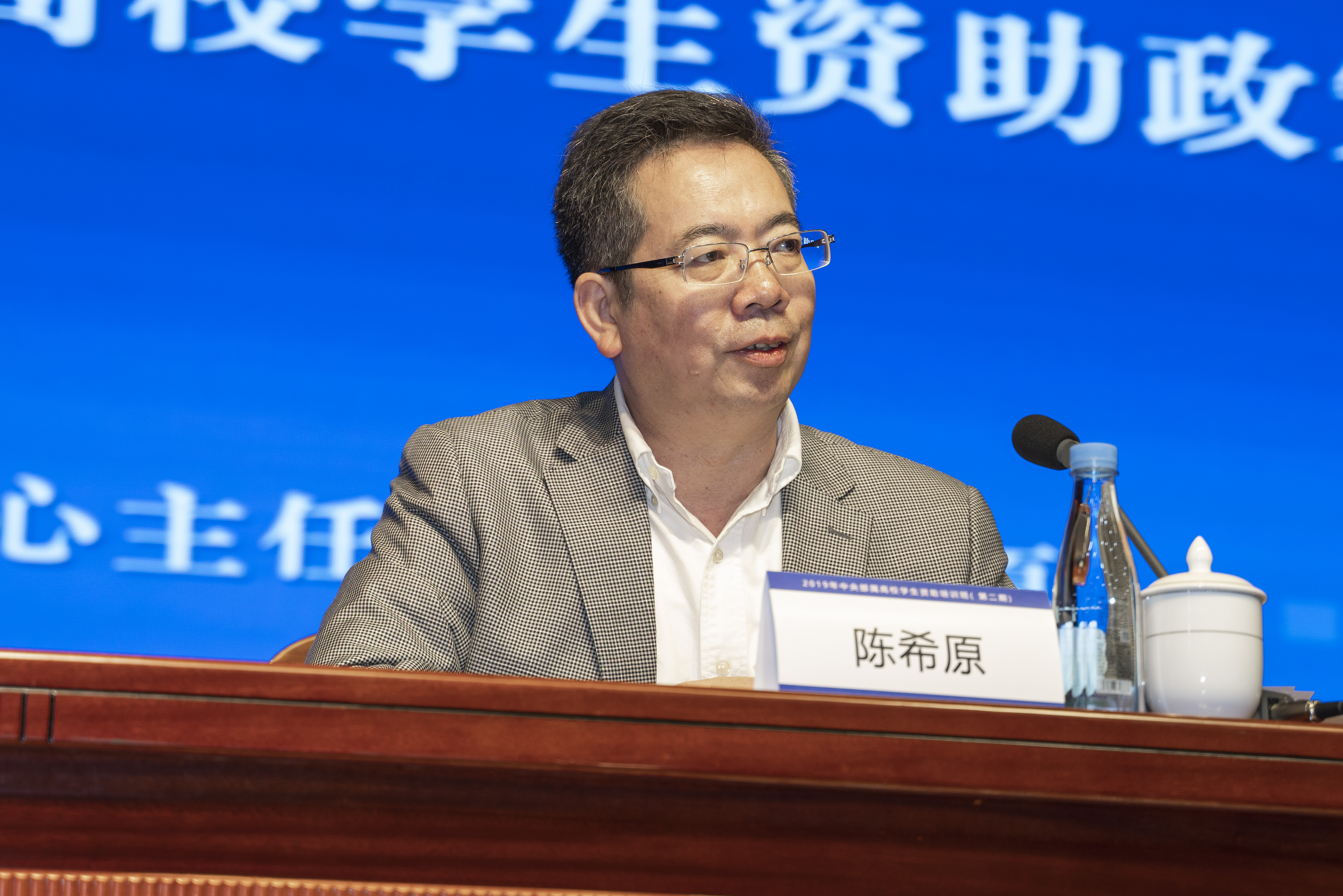 陈希原以《落实落实再落实 一丝不苟地落实好高校学生资助政策》为题发表讲话。他指出,一分部署,九分落实,2019年是工作落实年,要狠抓落实。他对全体高校学生资助工作者提出三点要求:一是思想要过关,主动从思想上查找差距,积极改进;二是责任要明晰,分级管理,分级负责,敢于承担责任;三是方法要对路,坚持“一线原则”,为了一线,讲在一线,查在一线,评在一线。他表示,落实新时代学生资助工作任务艰巨,责任重大,使命光荣,希望大家落实落实再落实,努力书写新时代学生资助工作新篇,为决胜全面建成小康社会贡献力量。