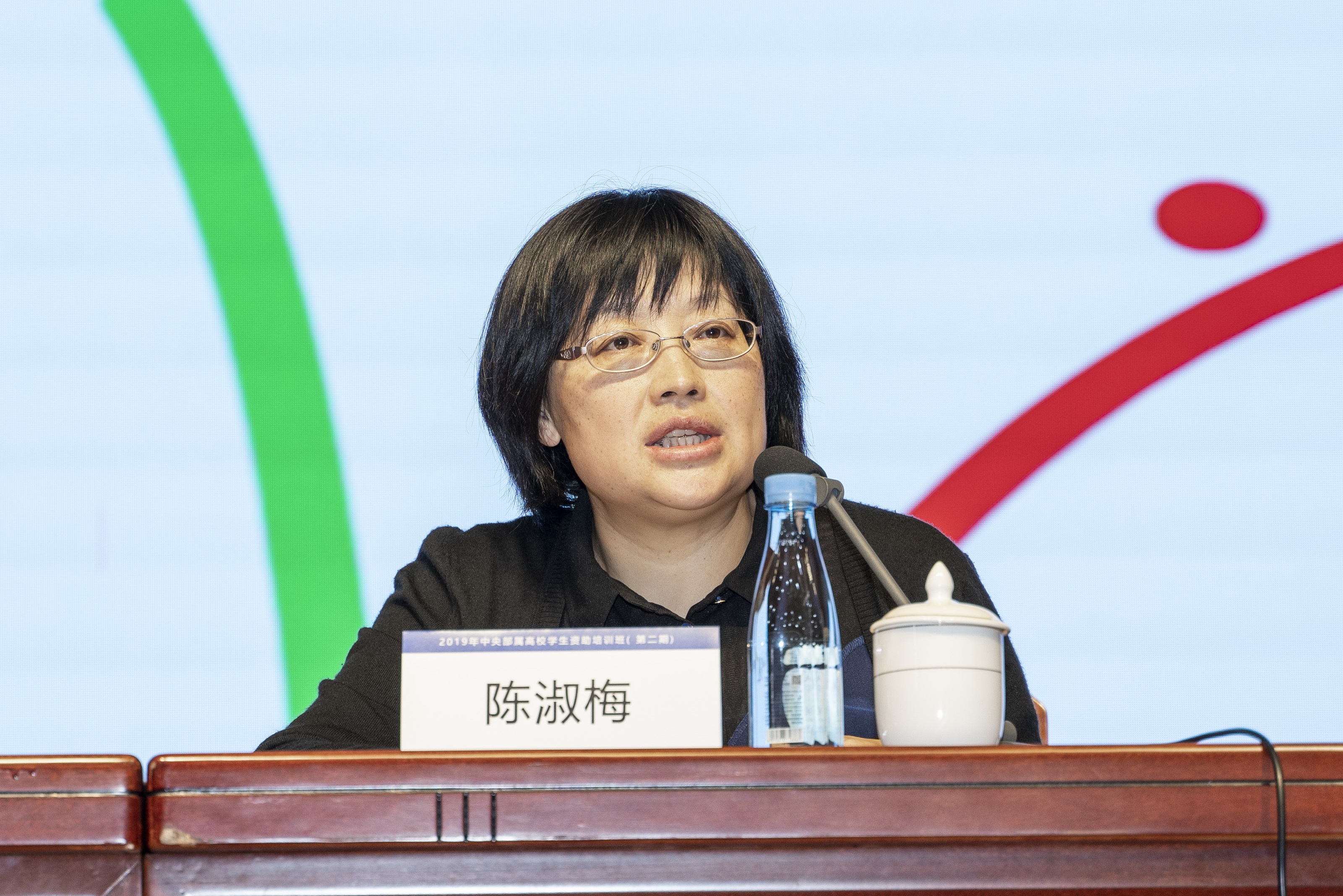 陈淑梅以《当前高校学生资助工作的形势与任务》为题做主题报告。她概括了当前高校学生资助工作在政策体系、管理体系、资助规模、精准资助、资助育人和信息化建设等方面取得的进展和成效,分析了新形势、新任务下学生资助工作面临的问题和挑战,提出了突出重点、狠抓落实的工作要求。她表示,中央高校是学生资助工作队伍的“排头兵”,要认真落实好国家的各项学生资助政策,帮助每个家庭经济困难学生顺利入学、完成学业、人人成才,为促进教育公平、助力脱贫攻坚、办好人民满意教育做出更大的贡献。
