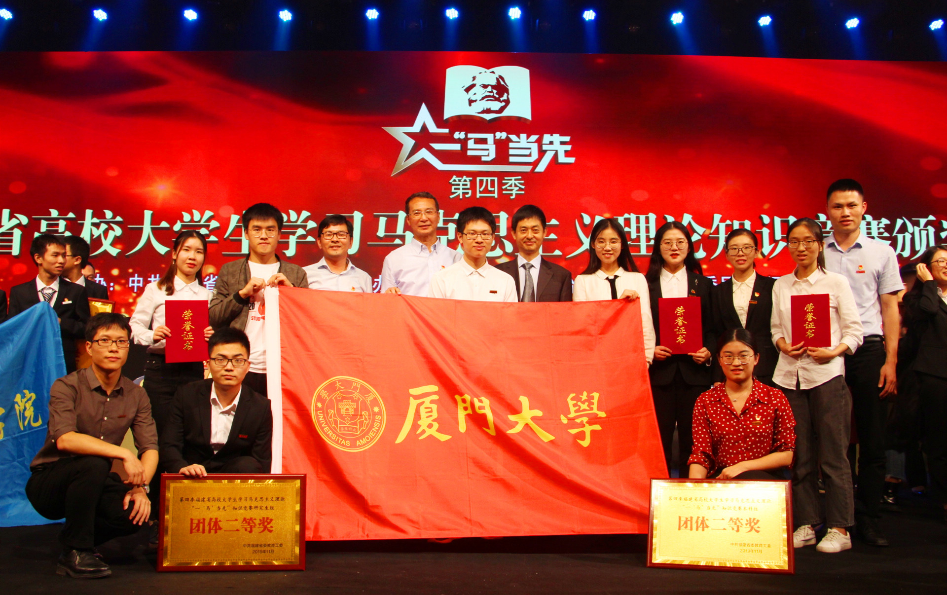 11月11日,由中共福建省委教育工委主办,福建省高校思想政治理论课教学指导委员会、福建教育电视台承办的第四季福建省高校大学生学习马克思主义理论“一‘马’当先”知识竞赛总决赛在福州落下帷幕。我校荣获本科生组团体二等奖、研究生组团体二等奖,个人获奖人数位列全省高校第一。经济学院本科生黄少茹属第二次参加该项赛事,在决赛中从竞答团中以第一名的成绩获得最后一张总决赛入场券,并上演“黑马”逆袭之战,在必答环节和淘汰环节都表现出色,最终获得本科生组个人一等奖,创下我校在该赛事中的历史最好成绩。经济学院研究生钱俊安获个人二等奖,公共事务学院研究生胡子琪、经济学院研究生王涛获个人三等奖,外文学院本科生刘凤祺、材料学院本科生张佩娟获得优胜奖,马克思主义学院研究生阙桃娣、经济学院研究生曹梦、经济学院本科生王东辉入围总决赛竞答团。校党委副书记赖虹凯、党委学生工作部副部长陈泗林到现场观摩研究生组总决赛并亲切慰问参赛师生。出发前,党委学生工作部部长李峰给参赛团队发送鼓励加油的短信,在11月6日进行的研究生组晋级赛和半决赛,我部副部长高斌也到场为选手助威,并参加了本科生组的领队会议。