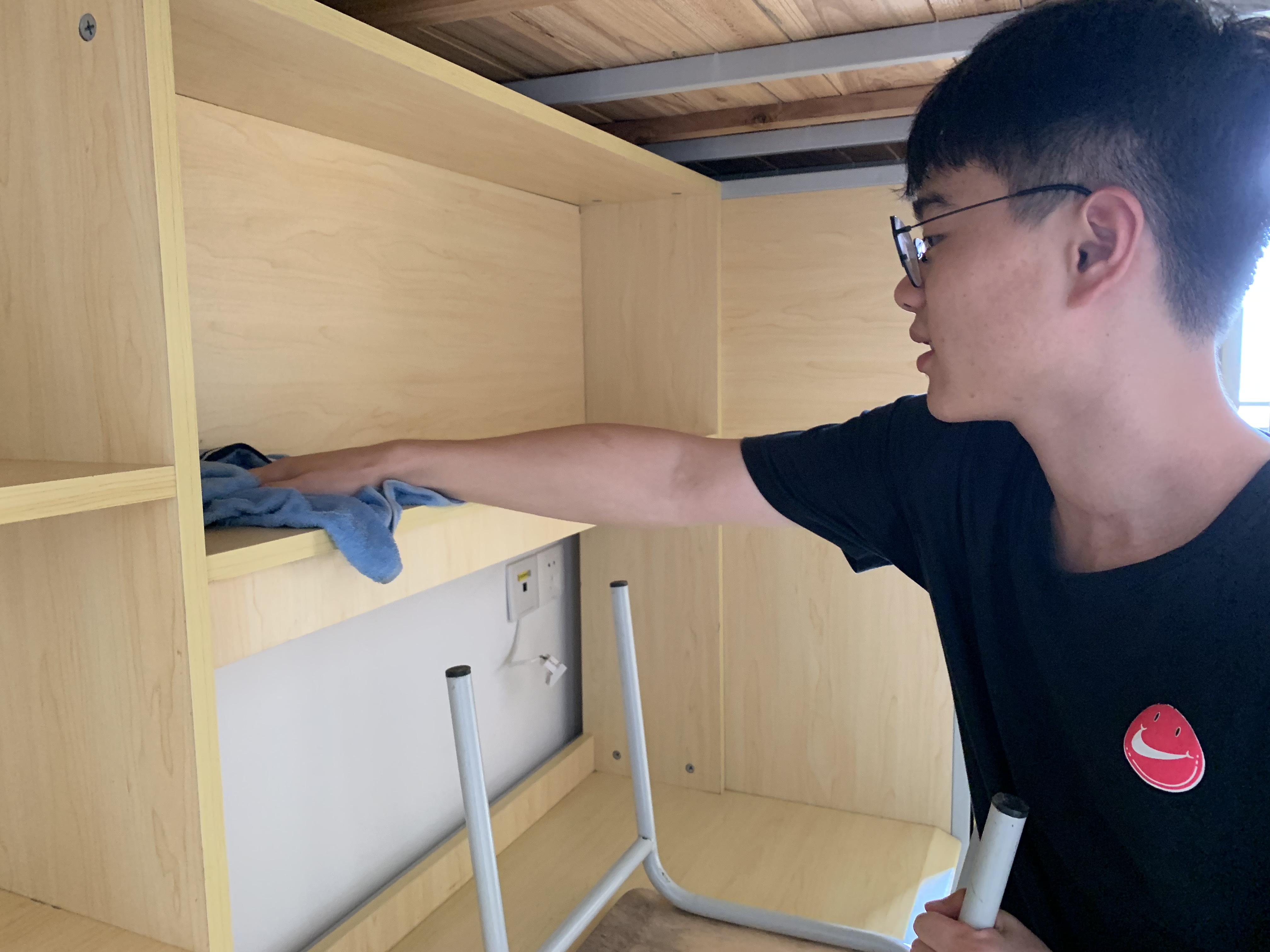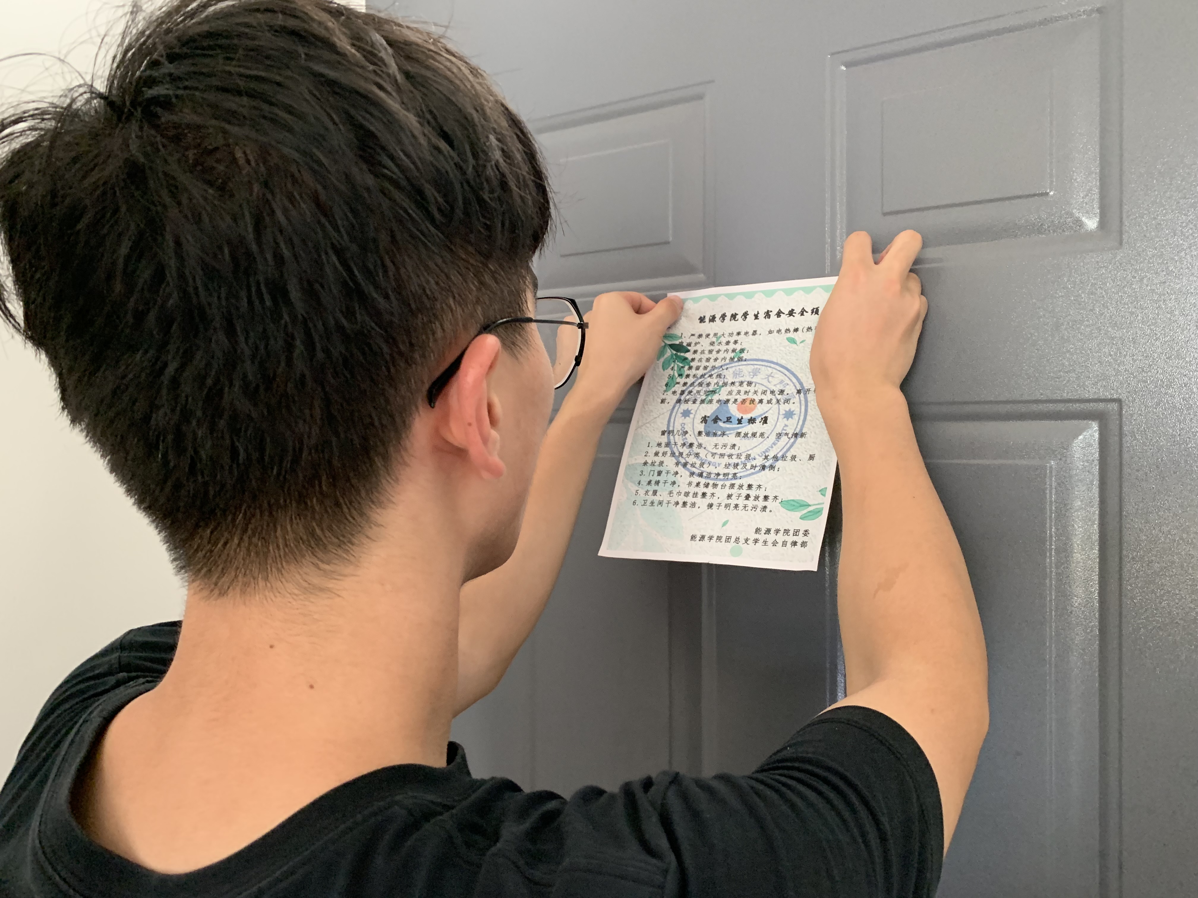 一走进能源学院新生的宿舍,便能在门后看到安全须知与卫生标准,在桌面上看到学长学姐留下的温馨提醒和真情关怀。这是在新生到来之前,学生干部和志愿者们前往宿舍做好卫生打扫,并为新生留下的见面礼。他们在每间宿舍里张贴了安全须知与卫生标准等注意事项,提醒和鼓励新生们在点滴生活小事中自我约束、严于律己;他们写下问候附于桌面,希望新生们踏入新生活的第一时间里便能感受到学院的温暖。敞亮整洁的宿舍里,短短几句却真情无限的关怀,是能源人之间的温暖传承。