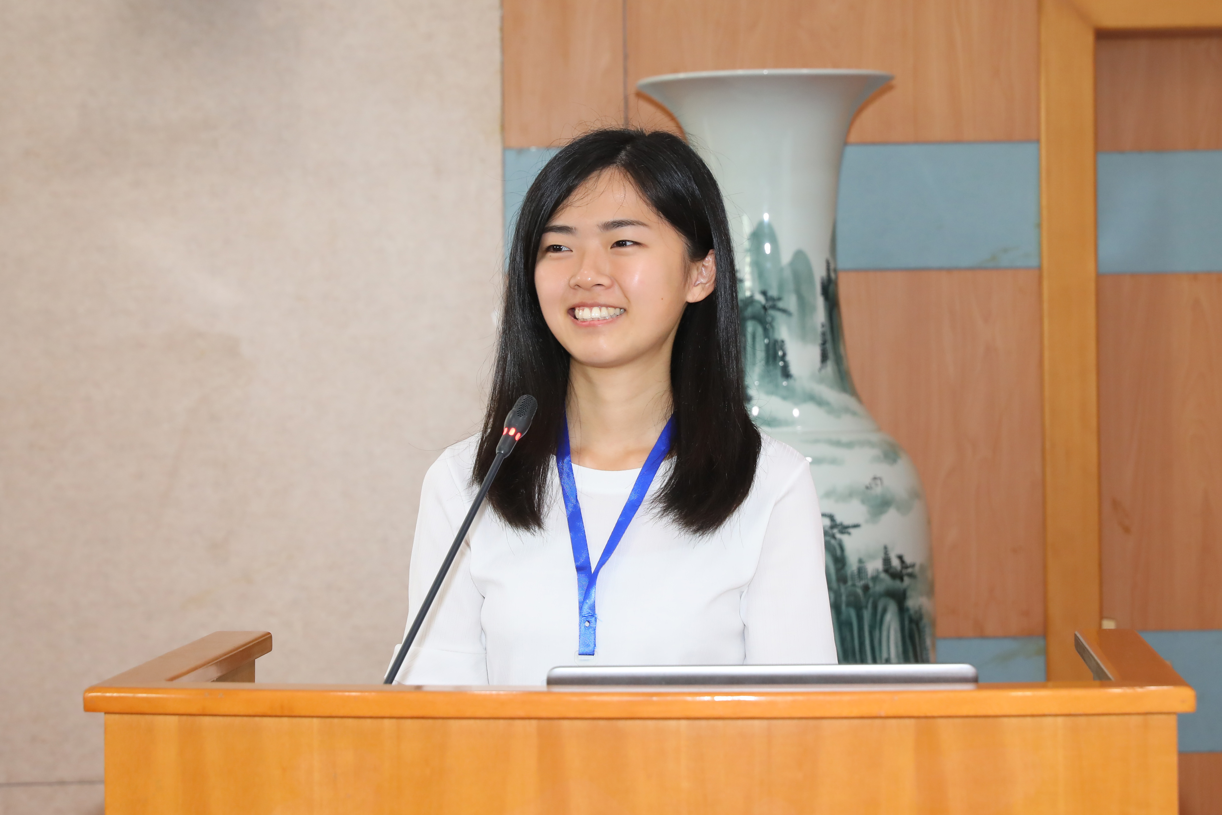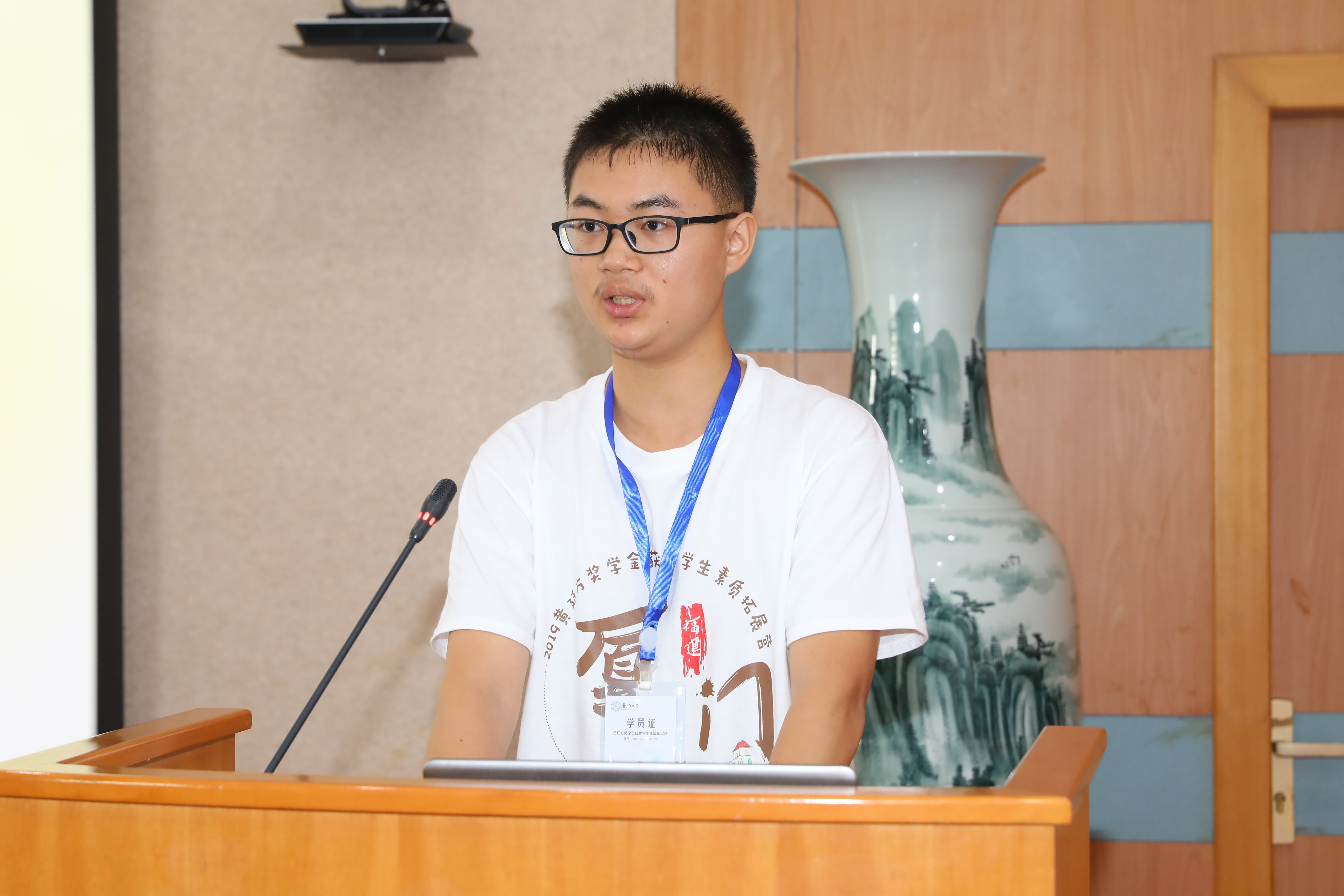 我校化学化工学院2018级本科生聂显臻同学作为营员代表发言。他讲述了自己获得黄廷方奖学金后的喜悦、感激和思索,以及自己在大学期间的成长变化,倡议全体参营同学珍惜机会,不负期望,自我提升,自我发展,在未来尽己所能奉献青春力量。