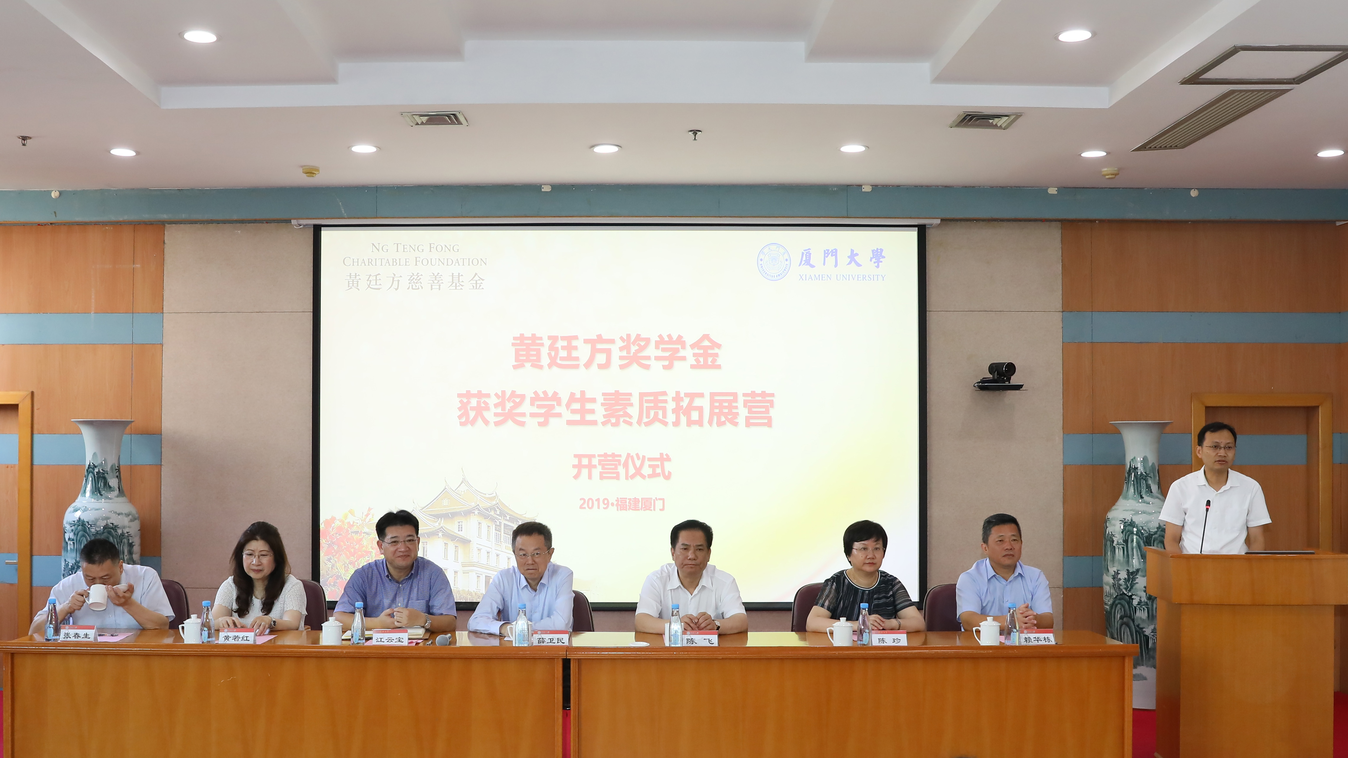 7月15日上午,2019年“黄廷方奖学金获奖学生素质拓展营”开营仪式在我校颂恩楼220报告厅举行。福建省政协副主席、省教育厅副厅长薛卫民,福建省委统战部副部长、福建省海外联谊会常务副会长陈飞,黄廷方慈善基金代表、香港信和集团中国业务总经理黄若红,福建省教育厅学生资助管理中心主任张春生、我校副校长江云宝、厦门市教育局副局长陈珍、厦门市委统战部副处长陈晶,厦门市学生事务受理中心、信和集团、我校党委统战部、学生处、学生资助管理中心的老师及黄廷方奖学金获奖学生代表等70余人参加了开营仪式。