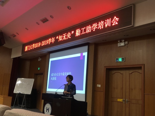 为贯彻落实党的十九大精神,健全学生资助制度,提升勤工助学育人成效,校学生资助管理中心于4月24日-29日在思明、翔安两校区举办了四场“知无央”勤工助学培训会,五百余名学生助理参加了本次培训。培训涵盖职场礼仪讲解、EXCEL常用函数与统计方法实操训练和PPT美化原则与技巧介绍等内容,针对不同类型岗位学生助理的需求,着重加强学生思想教育,培养学生自尊自信、自立自强的精神面貌,提升学生综合素质,搭建全程育人的有效平台,以期达到多方位育人成效。