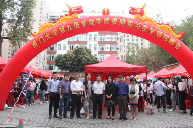 4月27日上午,由厦门大学学生就业创业指导中心主办,厦门大学管理学院职业发展中心、厦门大学大学生就业与创业协会共同承办的第九届管理学院暑期实习生专场招聘会在三家村广场隆重举行。