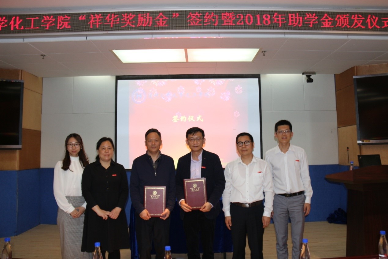 4月6日下午,化学化工学院在卢嘉锡楼202报告厅举办“祥华奖励金”签约暨2018年院级助学金颁发仪式。设奖方代表化学系80级校友、云南祥云祥华中学董事长高龙先生,学院党委书记宋毅老师,党委副书记李芬芬老师、刘俊杰老师,外事和校友秘书陈沁芳老师,本科生辅导员高世杰老师以及此次受资助学生近50人出席本次活动。活动由刘俊杰老师主持。