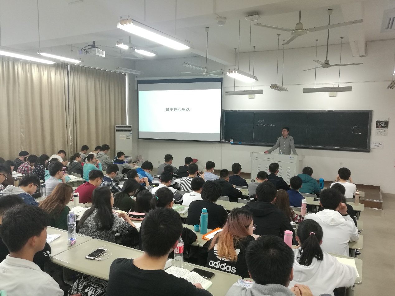 李绍玉老师宣读了攻读双学位和学校“思源计划”两个通知,并给同学们提出了建议。他结合发生在学校师生身边的案例讲解了诈骗类型、案例以及预防事项,特别提醒同学们要做到“不贪”、“不惧”,理性应对各种诈骗信息。随后,他重点分析了上学期的考试成绩,比较了全年级排名前40%(具有保研资格)同学中男女生所占比例、各班同学所占比例、以及班委同学所占比例等,劝告每位同学对上学期成绩加以反思,对本学期学习、工作、生活做好安排,要求班委以身作则,率先垂发,发挥好带头作用,并从“设定目标,精准导航”、“ 抓大放小,合理安排”、“戒除游戏,保持清净”、“一门深入,长时薰修”、“独学无友,孤陋寡闻”等方面结合学长学姐典型案例对同学们如何过好大学生活提出了建设性的意见和建议。