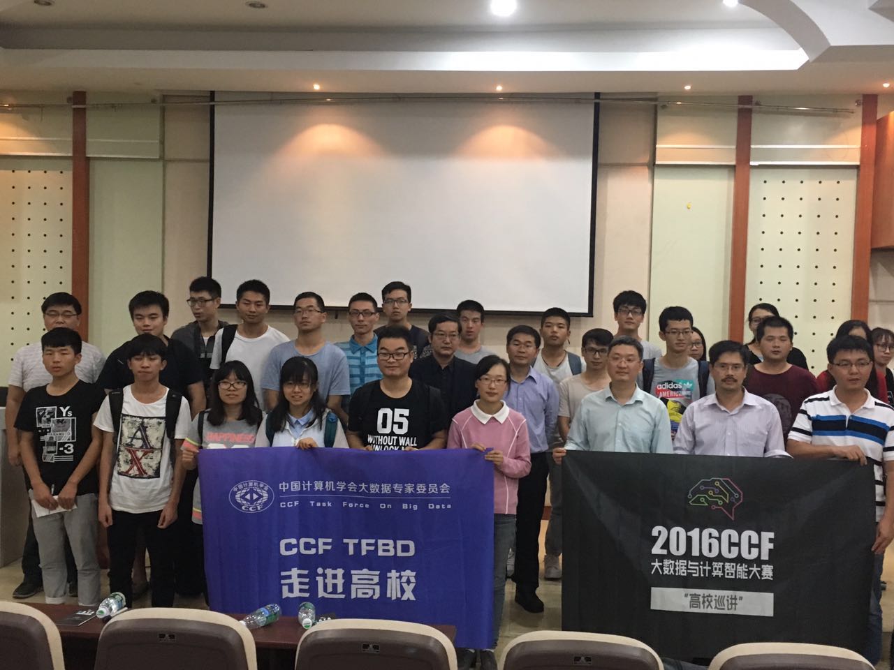 2016CCF大数据与计算智能大赛是由中国计算机学会主办,教育部易班发展中心、CCF大数据专家委员会、CCF高性能计算专业委员会、CCF中文信息技术专业委员会、CCF数据库专业委员会及数联众创共同承办的,大数据及人工智能领域算法挑战及创新应用大型赛事。本届大赛引入了来自各创新企业与科研机构的11道高质量大数据与人工智能创新赛题,涉及智能电网、搜索广告、O2O营销等领域,提供大量来自真实场景的问题与数据,已吸引了全球超过5300支高校及科研院所团队参与,得到了百余位国内外知名专家的指导和支持,成绩斐然。本次CCF“高校巡讲”活动将在东部、西部、南部、北部以及中部地区各选择一所学校作为高校巡讲地点,厦门大学作为南部地区唯一一所承办高校,与CCF大赛组委会配合,成功举办了此次讲座。