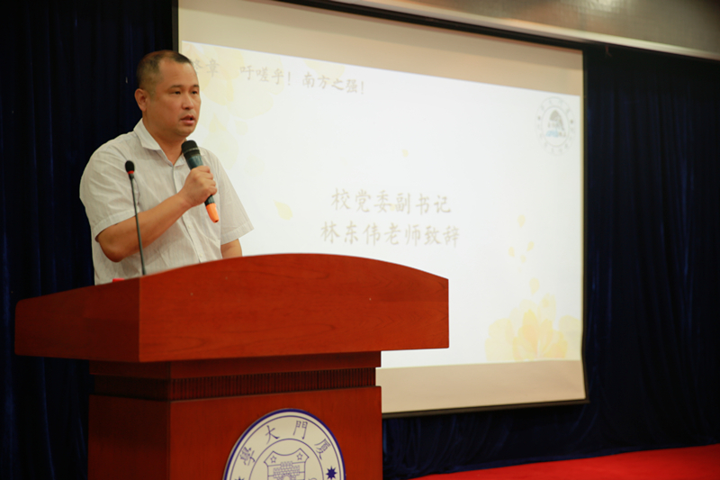 6月11日上午,厦门大学“自强思源”优秀学生培养计划一期学员结业典礼暨四期学员开班仪式在自钦楼多功能厅举行。校党委副书记林东伟,中国光华科技基金会永庚公益基金执行负责人王灿女士,校关工委主任陈力文,校学生工作处处长夏侯建兵,校友总会秘书长曾国斌,学生工作处副处长王洁松、陈泗林,校友导师、厦门元初食品股份有限公司副董事长陈启明以及“自强思源”一期至四期的辅导员、学员出席典礼仪式。仪式由二期学员李璐瑶、三期学员李翔共同主持。