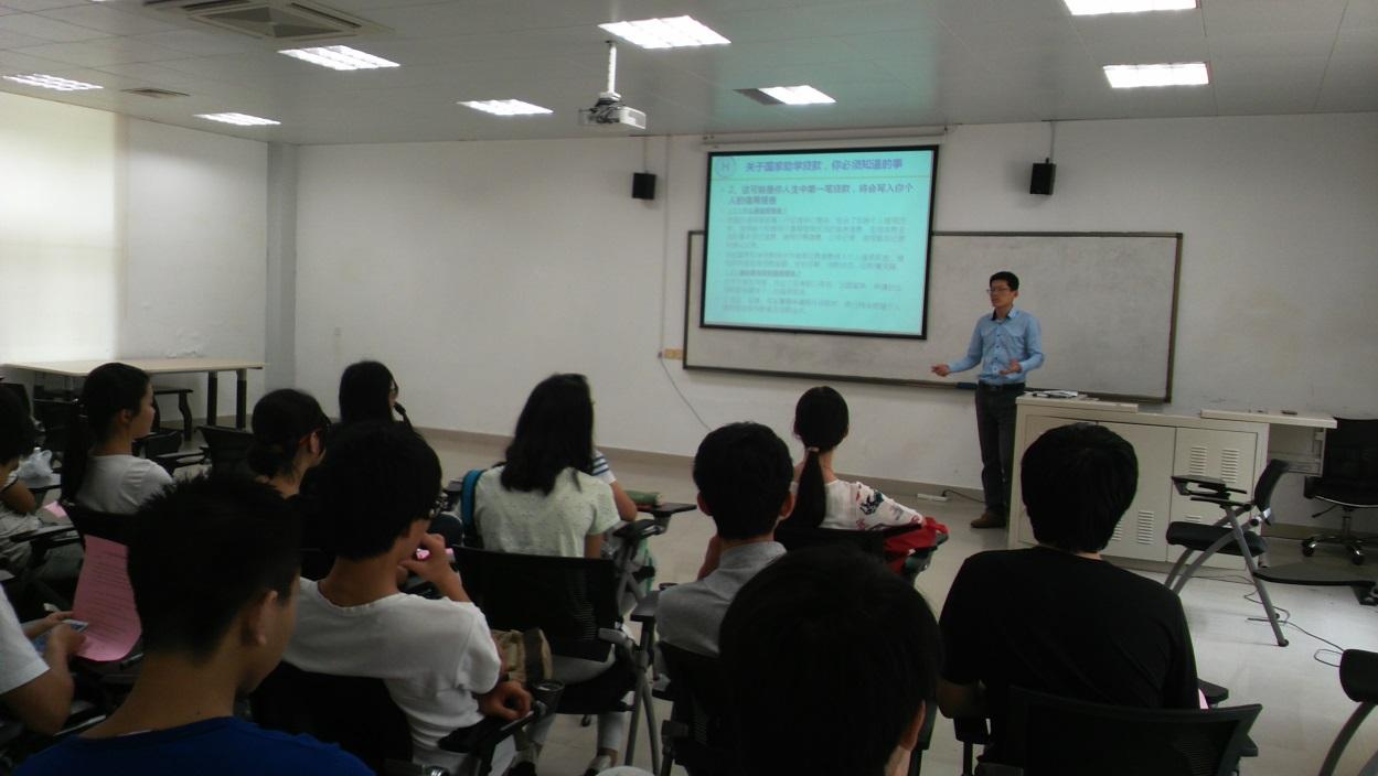 高世杰老师首先阐述了“贷款助学 信用助人”的重要性。他强调助学贷款是国家加大对普通高校家庭贫困学生资助的支持力度,同学们应该珍惜国家的育人政策,珍惜在校期间的学习时光。