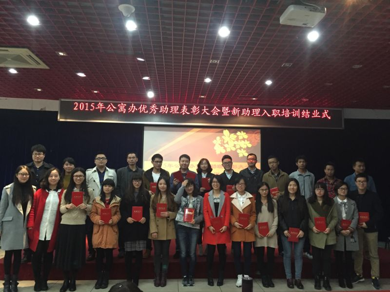 12月27日下午,学生公寓学生工作办公室(以下简称“公寓办”)优秀助理表彰大会暨新助理入职培训结业式于自钦楼多功能报告厅隆重举行。厦门大学学生工作处副处长徐跃进老师、公寓学工办的全体辅导员老师出席了本次结业式。