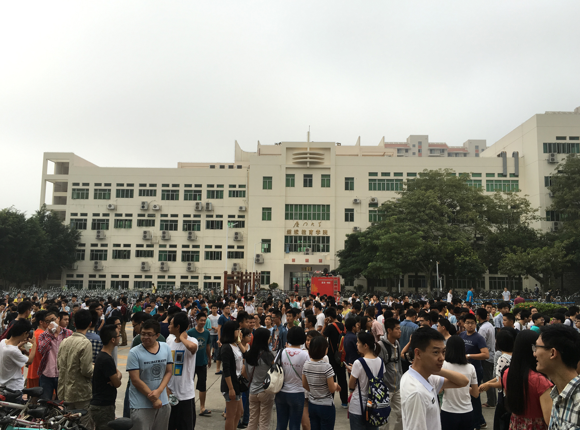 上午7:00,随着滚滚浓烟和急促的警报声,演练正式开始,疏散、救护等安全保卫工作有条不紊的展开。在工作人员指引下,同学们迅速有序撤离至安全区域,学院辅导员清点人数并及时反馈。整个演练过程衔接紧密、运转顺畅。5分钟后,居住在海韵两栋楼的约1600余名同学疏散完毕。演练结束后,厦门市厦港消防中队的消防官兵现场演示灭火,并指导在场的师生如何正确使用灭火器、消防水带等相关消防设施。