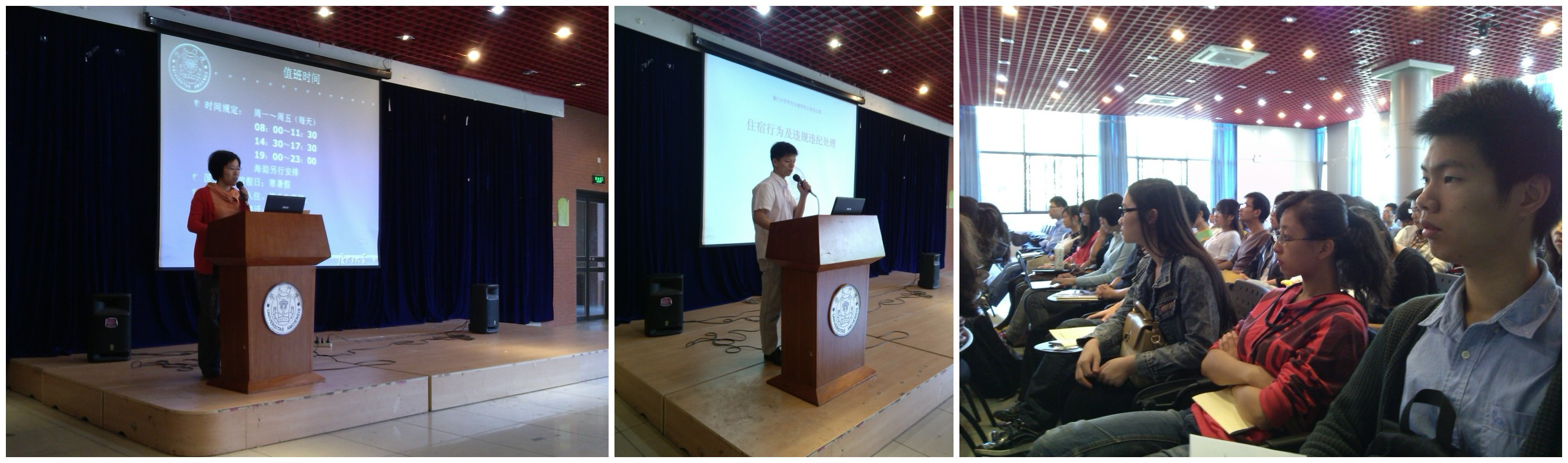 严格遵守公寓学工办的管理制度、全面了解公寓管理的具体规范是学生助理做好服务工作的保证。朱少龙老师从学生助理服务守则、公寓管理各项规定、典型案例介绍、制度建设等方面做了详实的报告。