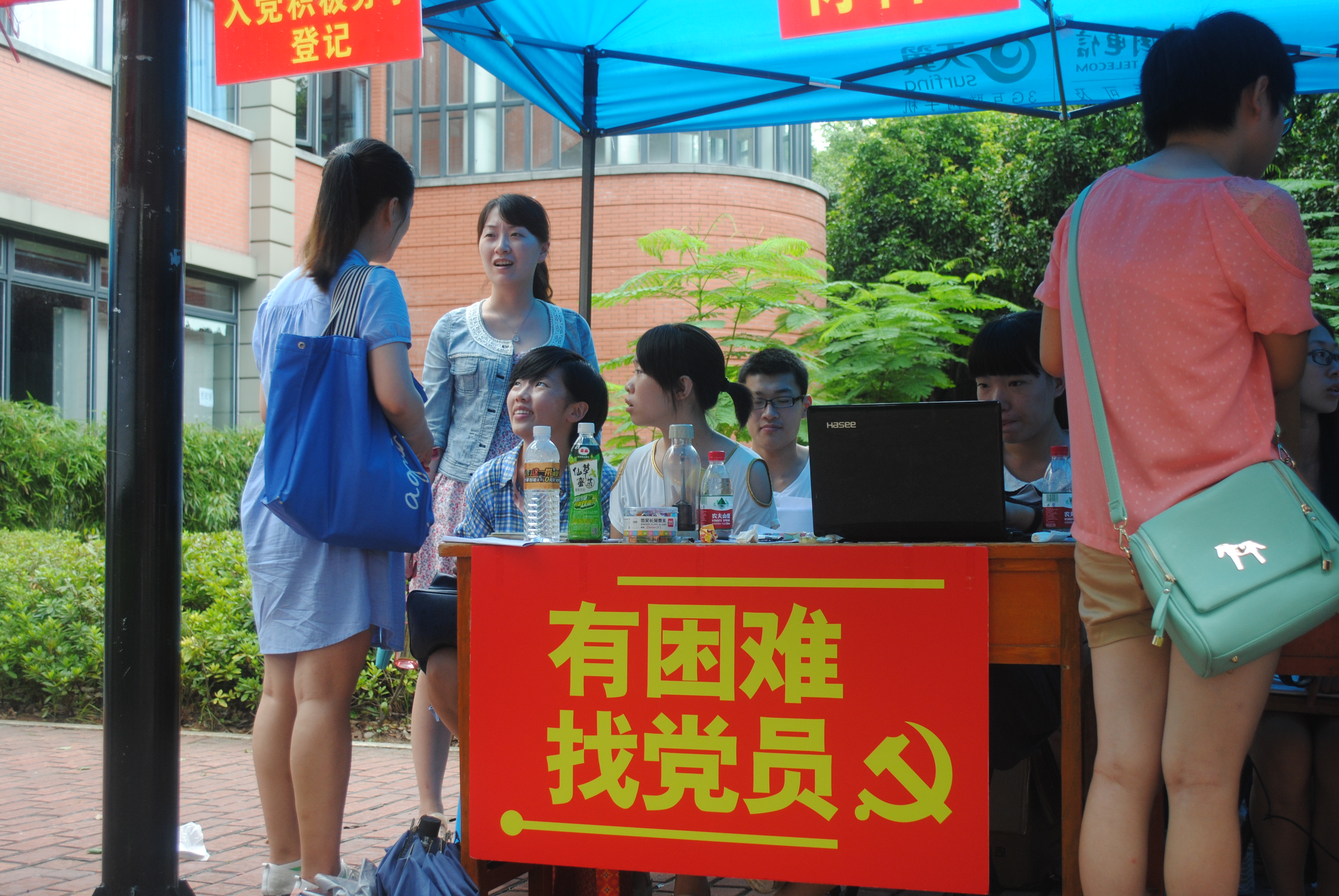 党员带团员,党团共成长。今年迎新工作中,学院专门开辟“入党积极分子”登记处,鼓励入党积极分子报到注册后,和新生党员一起加入到迎新队伍中来。新生党员与新生团员构成的迎新队伍成为学院迎新工作中的一道亮丽风景线。“我是孙筱蔚,我住在芙蓉十一,有什么事就来找我。”面对新生,新生党员孙筱蔚总是这样说。由于家长不能住校,有的同学是第一次出远门,考虑到有些同学晚上会因为生疏感到害怕,孙筱蔚主动提出大家可以在一起聊聊天。家长听后很安心,同学很感动,自己也很温馨。“融入到同学之间,奉献所能,是一件幸福的事”。