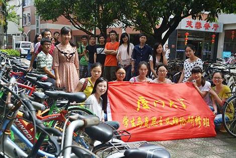 7月19日,厦门市受2013第8号热带风暴“西马仑“影响普降暴雨,厦门大学多处积水,校园环境遭到严重破坏。为了配合学校尽快恢复整洁美观校园环境,厦门大学第三期学生马克思主义理论研修班第一组、第四组和第五组成员在7月20日上午开展了整理校园散落自行车志愿活动。