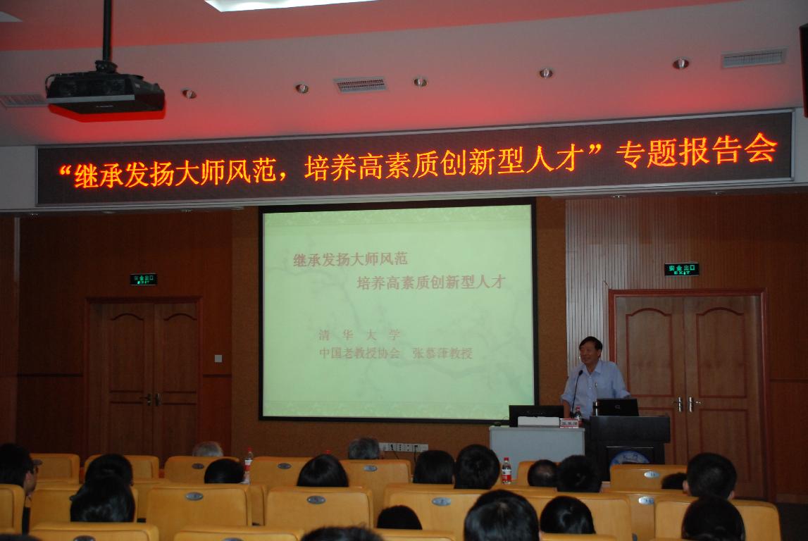 3月20日,中国老教授协会名誉会长,原清华大学副校长,教授、博士研究生导师张慕葏教授来我校作题为“继承发扬大师风范,培养高素质创新型人才”的专题报告。辅导员代表、学生代表聆听了报告,学生处处长夏侯建兵主持报告会。