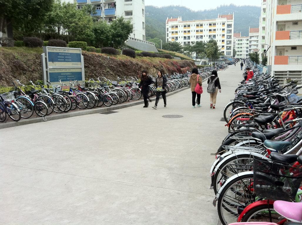 新学年开始后,我校海韵学生公寓住宿学生数大幅增加,导致自行车数量剧增,由此而产生的自行车停放问题日益凸显。原本宽阔的道路因自行车的无序停放而显得拥挤,严重影响了同学的正常出行,也为公寓住宿消防安全埋下了隐患。