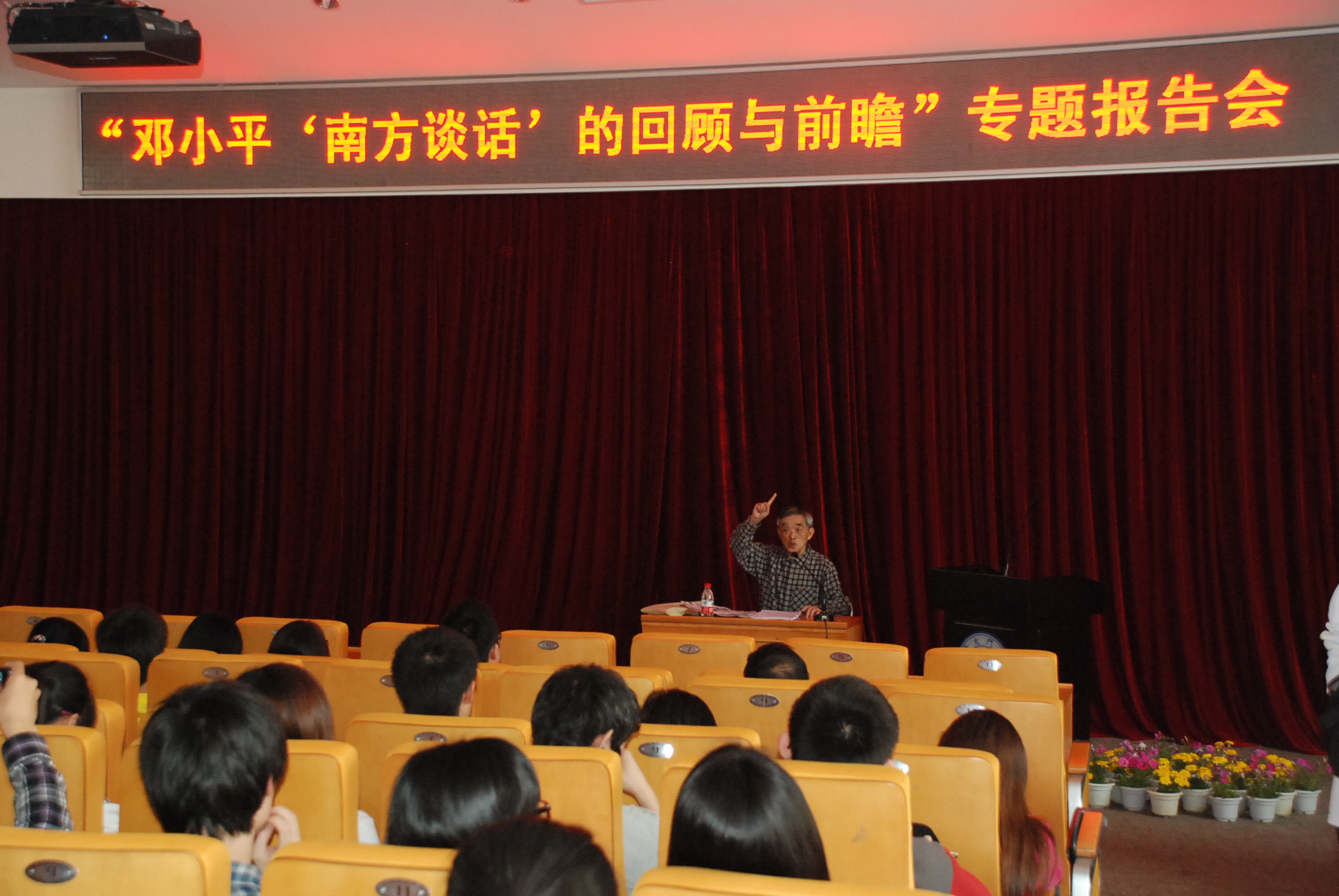 ,厦门大学经济学院许经勇教授在化学报告厅作了题为“邓小平‘南方谈话’的回顾与前瞻”专题报告。报告会由学生工作部刘艳杰副部长主持。