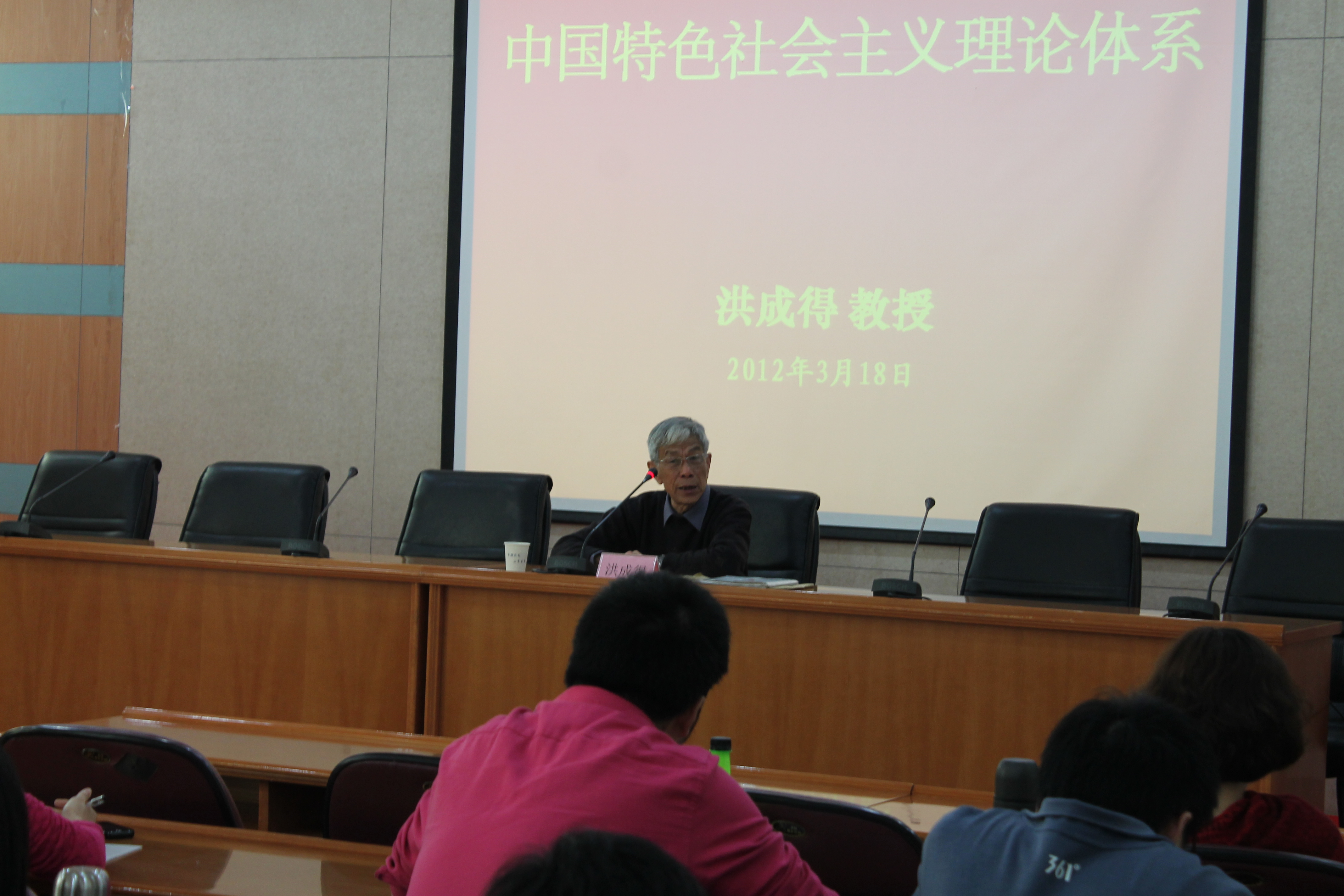 上午,洪成得教授引领大家回顾了中国特色社会主义理论体系的开篇、形成、丰富与发展的过程。他说,中国特色社会主义理论体系开始于毛泽东时期,南方谈话标志着中国特色社会主义理论体系框架的基本形成,“三个代表”重要思想的提出完善了中国特色社会主义理论体系。在当前这一历史时期,中国特色社会主义理论体系获得了极大发展。洪成得教授最后说,中国特色社会主义事业是一项极其艰巨的事业,需要几代人、十几代人甚至几十代人的不懈努力才能实现。