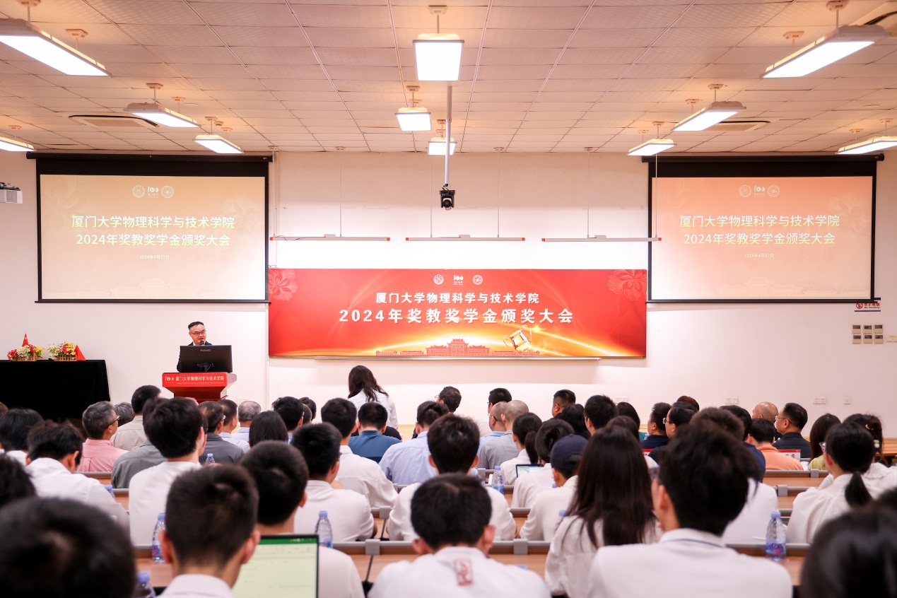 2024年4月27日上午,物理科学与技术学院2024年奖教奖学金颁奖典礼在物理大楼117报告厅举行。厦门大学原党委副书记、关工委常务副主任、校友总会副理事长赖虹凯,学院党委书记李书平,党委副书记刘钟南,副院长陈理想,物理系副主任张学骜,各项奖教奖学金捐资代表以及校友代表出席仪式。学院党委副书记郑诚明主持大会。