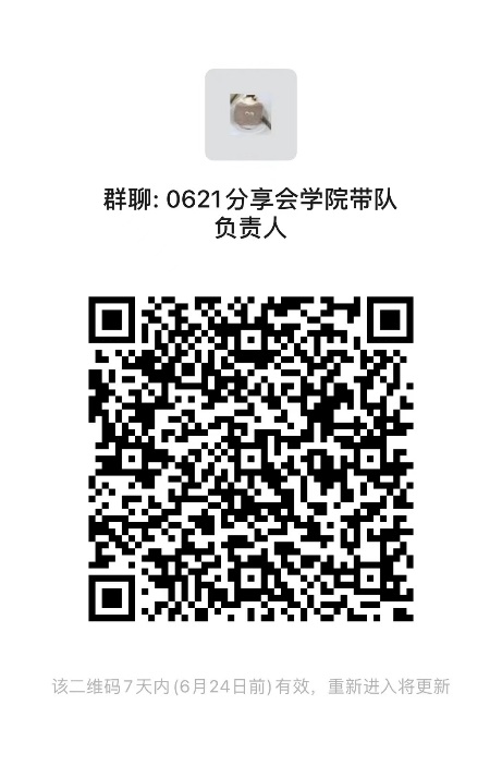 请各学院通知带队负责人于6月21日12:00前扫以下二维码加入微信群。