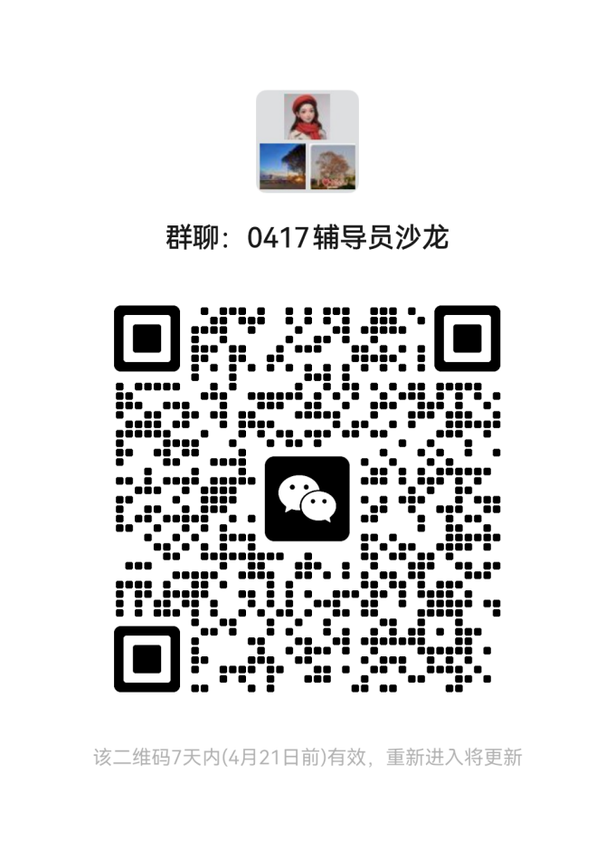 2.请有意参加的辅导员于4月16日(星期三)16:00前扫描下方二维码入群(入群后请实名)。