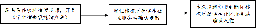 4.入住新生宿舍前,需先完成过渡宿舍的退宿。请携带录取通知书、身份证、近期一寸照片,以新生身份入住新生宿舍。