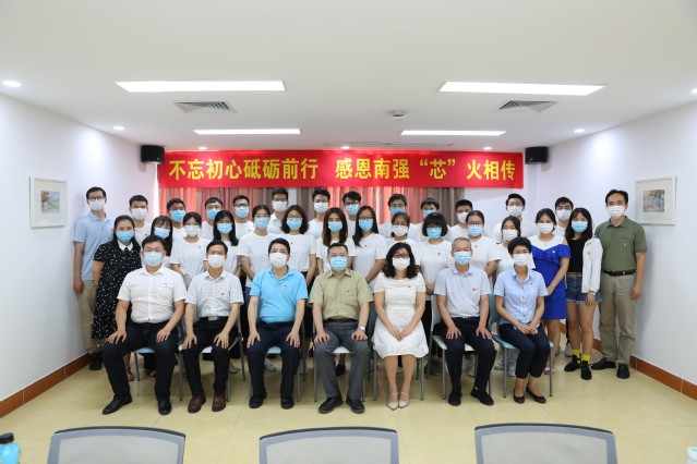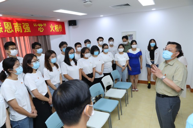 6月19日下午,电子科学与技术学院(国家示范性微电子学院)“永葆党性初心,担当时代责任”毕业班主题党日活动在学生公寓海韵8号楼学习共享空间举行。校长张荣到所联系支部——电子工程系2017级硕士研究生党支部同毕业班同学共话青春成长。本次主题党日活动分为主题微党课、院情介绍、支部工作回顾、宣读“百年校庆”支部捐赠倡议书、重温入党誓词、校长寄语、毕业赠礼等环节。