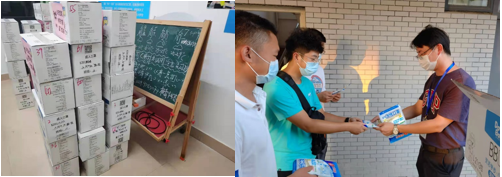 工作组成员深入学生宿舍,将办公场所前移学生社区,定期走访学生宿舍,开展谈心谈话,宣传与落实疫情防控相关政策。在宿舍走访期间,辅导员还给同学们送去急需的医用口罩,叮嘱学生出入宿舍戴好口罩,做好自身防护。所有辅导员开展驻楼值班值守,建立联防联控24小时值班制度,确保有突发情况能够第一时间到达现场。