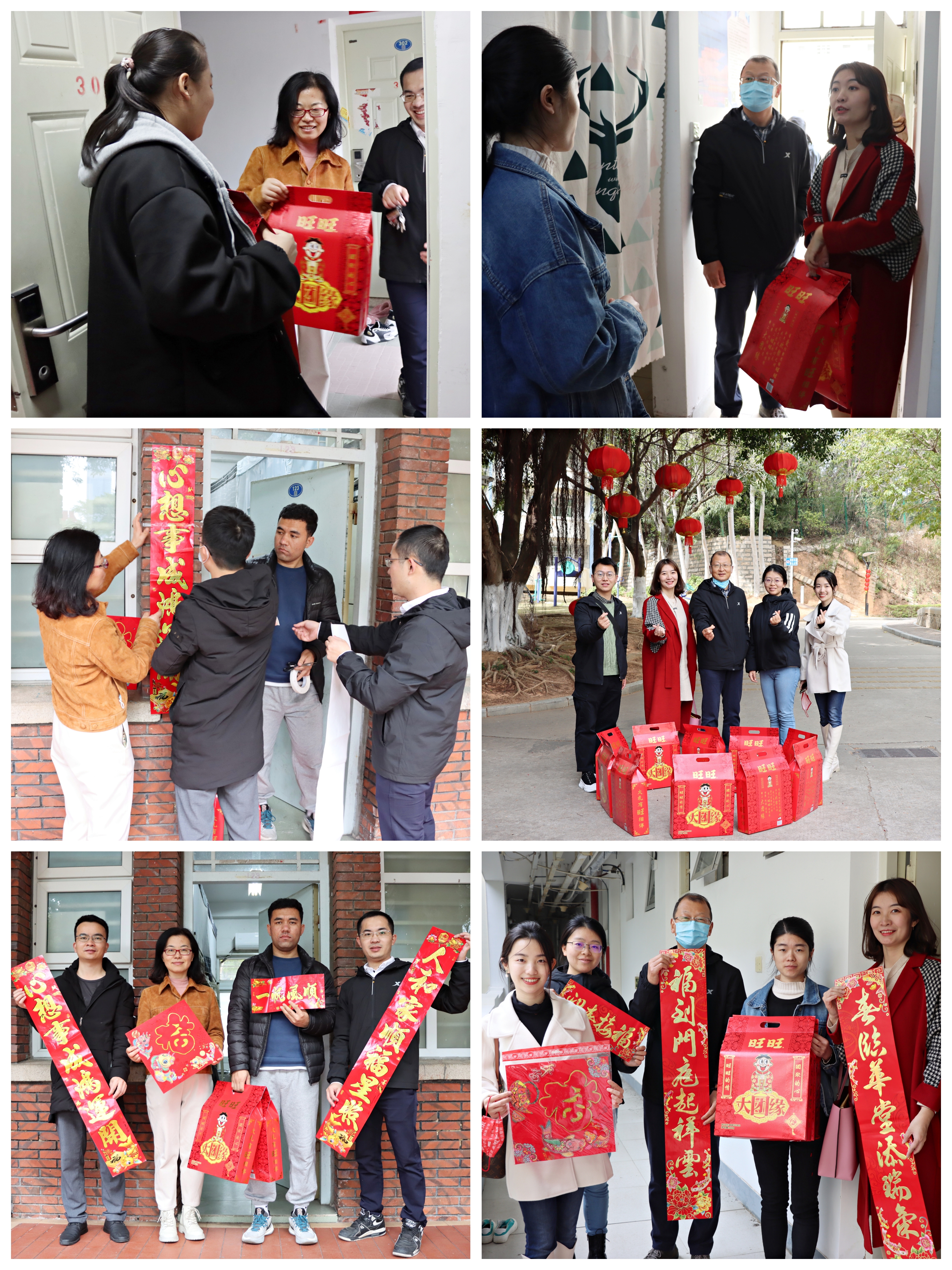 1月20日,经济学院党委副书记周蕾、杜海林带领本研辅导员前往学生宿舍慰问寒假留校学生。学工组成员深入了解学生留厦计划和集中住宿的安排,并积极向学生传达疫情防控、宿舍安全、学校节日活动安排的内容,引导学生度过一个充实、安全、温馨的寒假。在学生宿舍,学工组成员与学生一起贴春联、贴“福”字,营造出浓浓的节日氛围。
