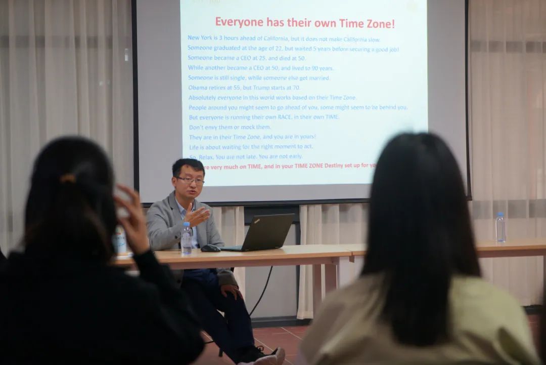 活动开始揭老师以“自强不息”为引入,指导大家如何正确认识自我。目前大学生们的“内卷”情况较为严重,导致跟不上节奏的同学们焦虑多于行动力,他提醒同学们盲目的跟风不利于个人发展,除了平日理论课程的学习,需注重学科竞赛、社团等活动的参与,选择适合自己的项目,多一些积累,少计较个人得失。揭祖亮老师细致理性的分享让同学们听的入神。随后,吴佳蓓老师引用一个个鲜活有趣的案例,指出同学们可能会在日常生活中出现的情绪问题该如何有效解决,沙龙现场不时传出同学们笑声,气氛十分活跃,吴老师鼓励同学们在遇到问题时要勇于面对和尝试,不要逃避问题。
