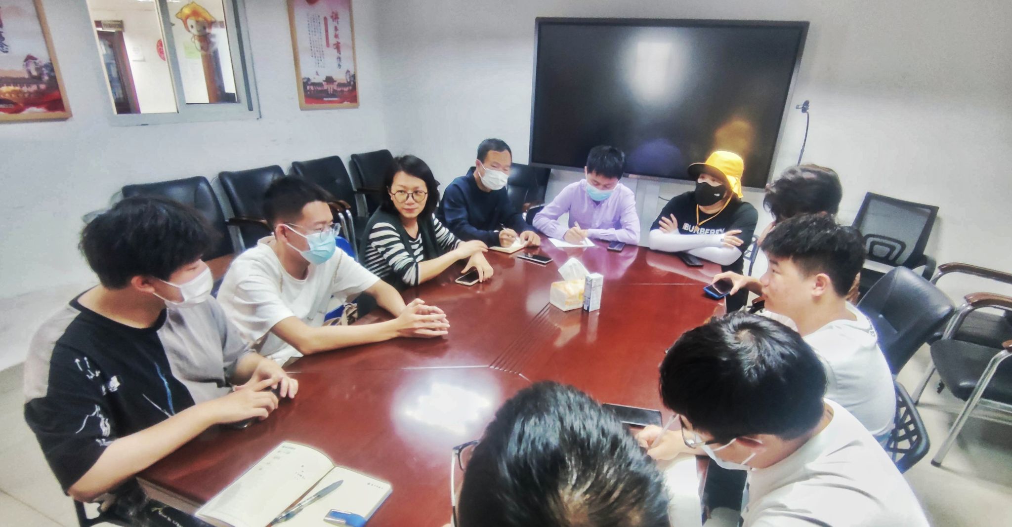 老师们与楼长、层长在勤业六公寓办会议室进行讨论、交流