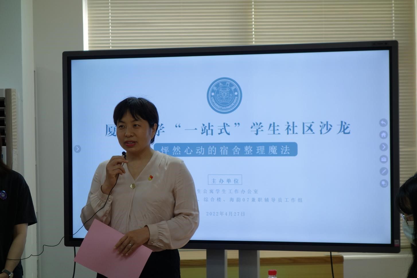 为充分发挥“一站式”学生社区的育人功能,进一步发挥劳动在学生成长成才过程中的促进作用,4月27日下午,一场主题为“怦然心动的宿舍整理魔法”沙龙在芙蓉13学习共享空间举办。“行星整理事务所”主理人、日本JALO一级认证规划整理师大茶现场分享整理收纳技巧。活动采用线上和线下相结合的方式进行,由学生公寓学生工作办公室秘书马向华主持。