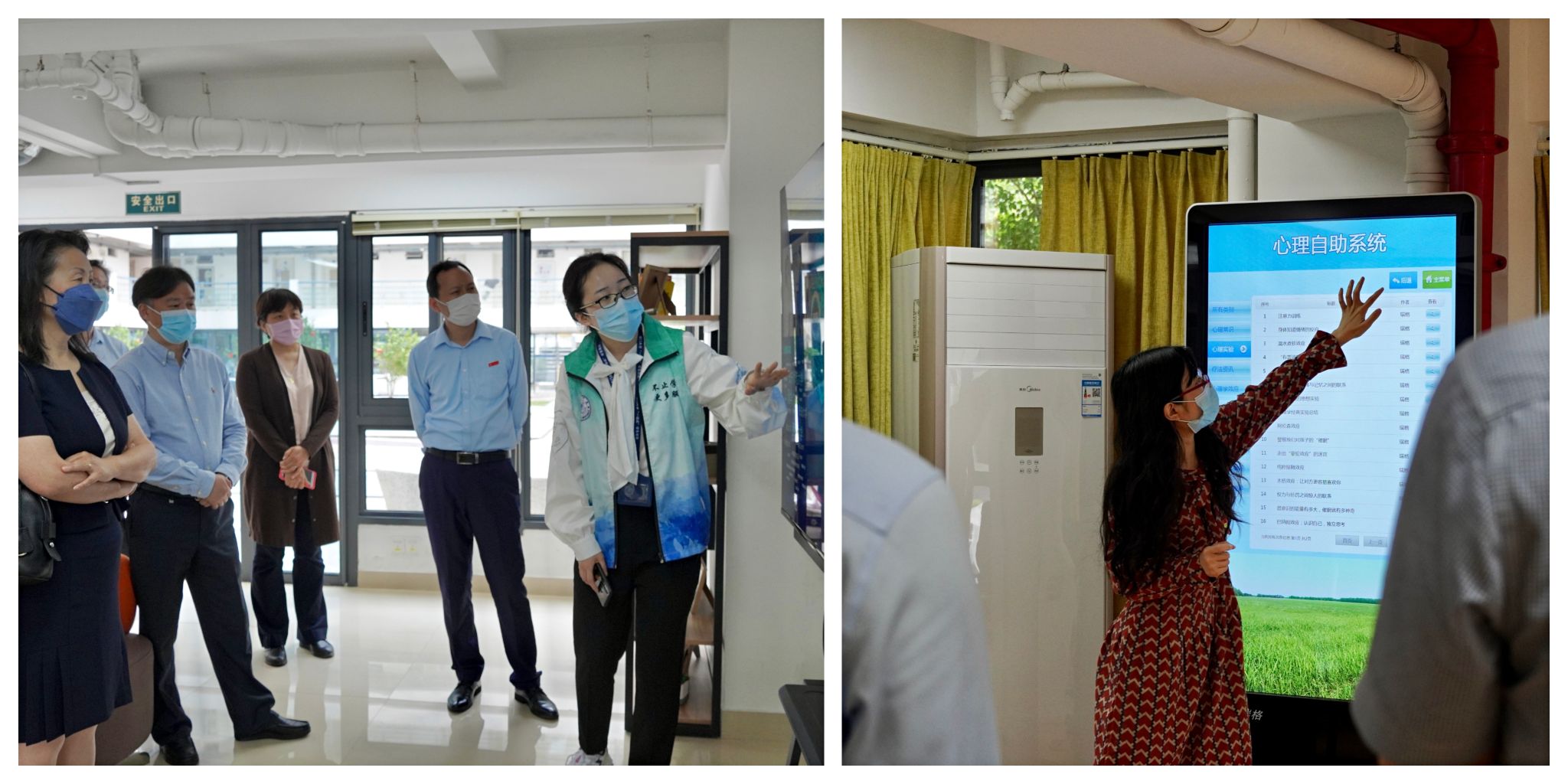 在海韵9、14学习共享空间,来宾一行参观了“小舍大爱,迈向百年”主题展、学生社区心理促进室、“阅读大学•大学悦读”图书角、老辅导员书架等,并通过厦门大学“一站式”学生社区数据可视化平台,了解我校学生社区入住、门禁、用电等信息化建设情况;在海韵15创客空间,学生创客团队代表展示创业概况。