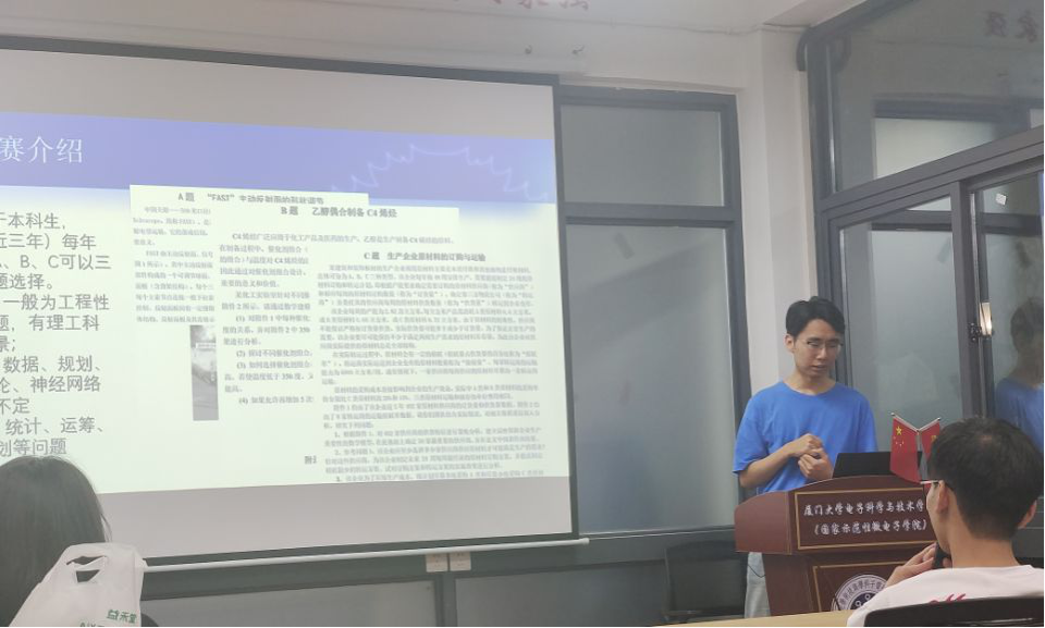 刘建法同学从竞赛介绍、赛前准备、赛时过程、竞赛特点四个方面进行分享。他介绍了数学建模竞赛的背景、往年获奖情况,讲解了赛前该如何进行准备,强调要从往年优秀论文中学习。他结合自身例子说明了竞赛过程中的注意事项,指出了竞赛特点,鼓励大家积极参加。